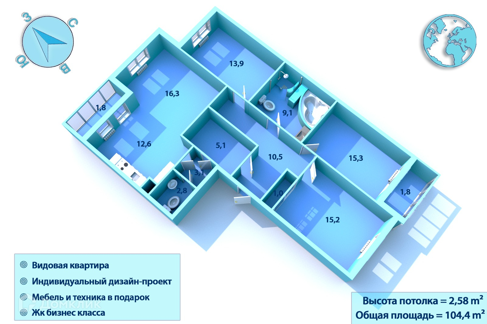 Общая площадь 109 м2