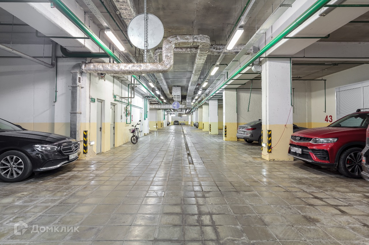Просторный подземный паркинг,  в который можно попасть на лифте.