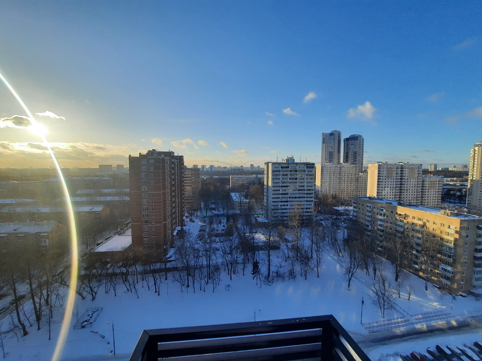 *реальная квартира, средний 15 этаж, вид в сторону Ленинградского шоссе, на запад. Ленинградку не слышно т.к. опять же средний этаж.