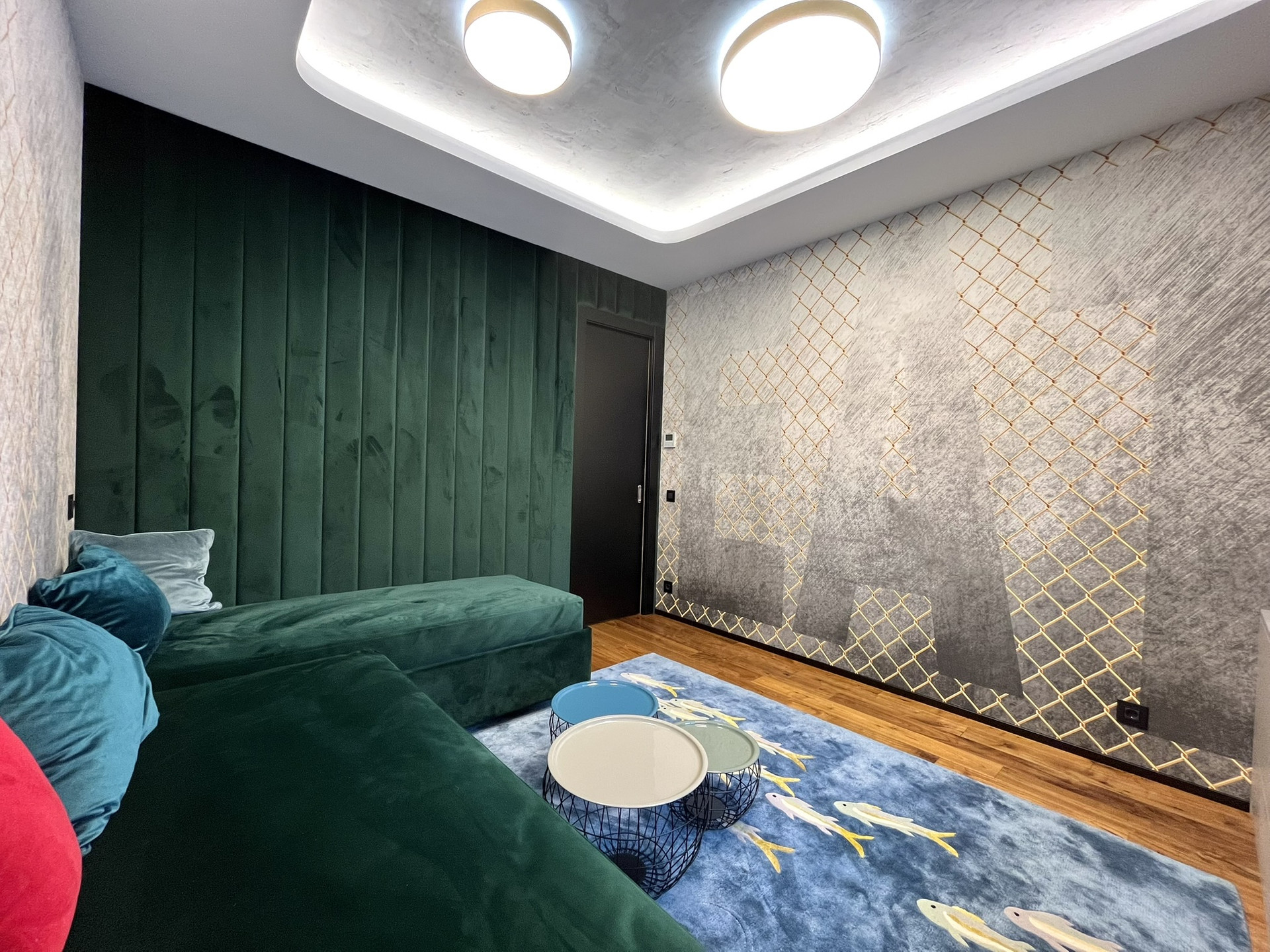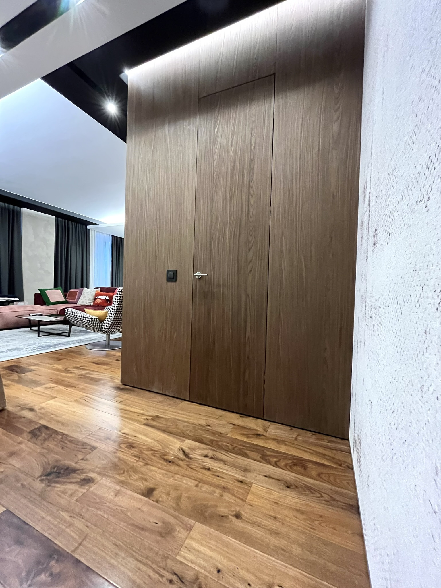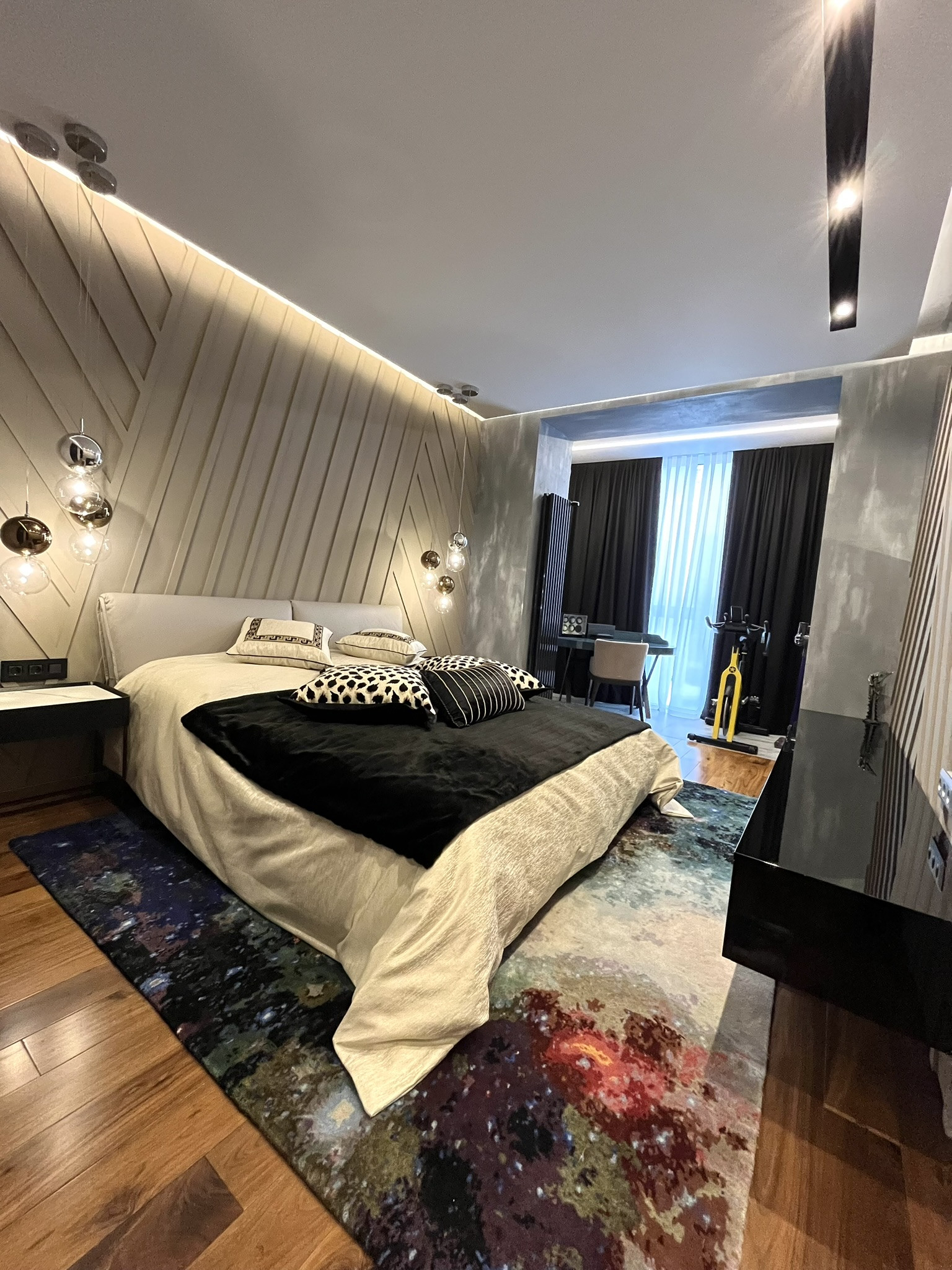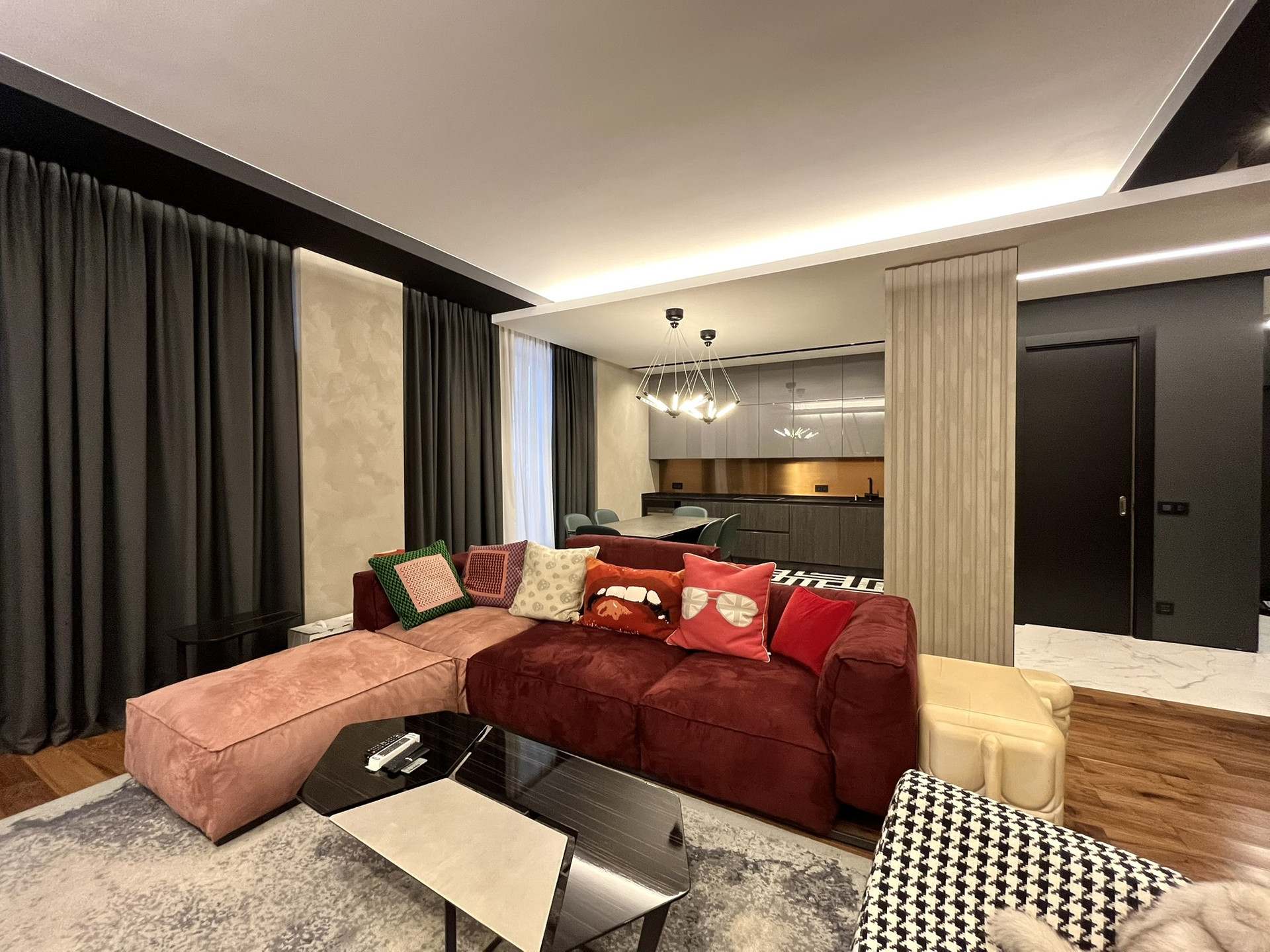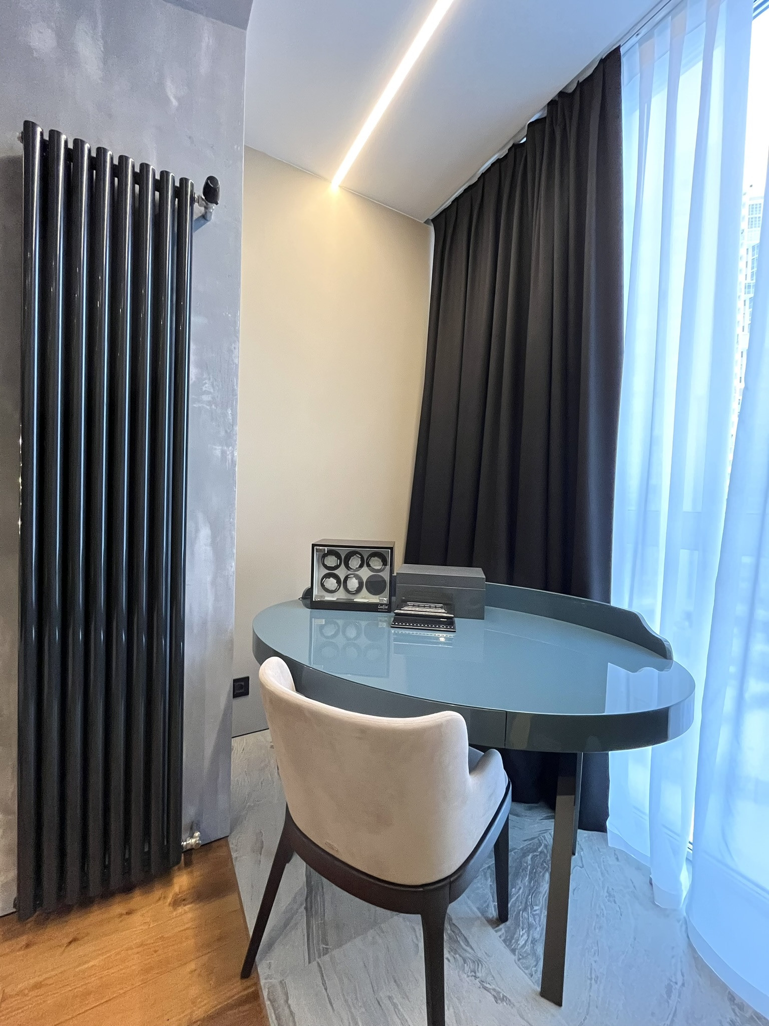 В квартире выполнен качественный ремонт, по дизайн проекту из дорогих натуральных материалов. Вентиляция приточно вытяжная Mitsubishi Electric. Тёплые полы, Керамогранит,  Missouri Collection массивная доска из американского ореха.
