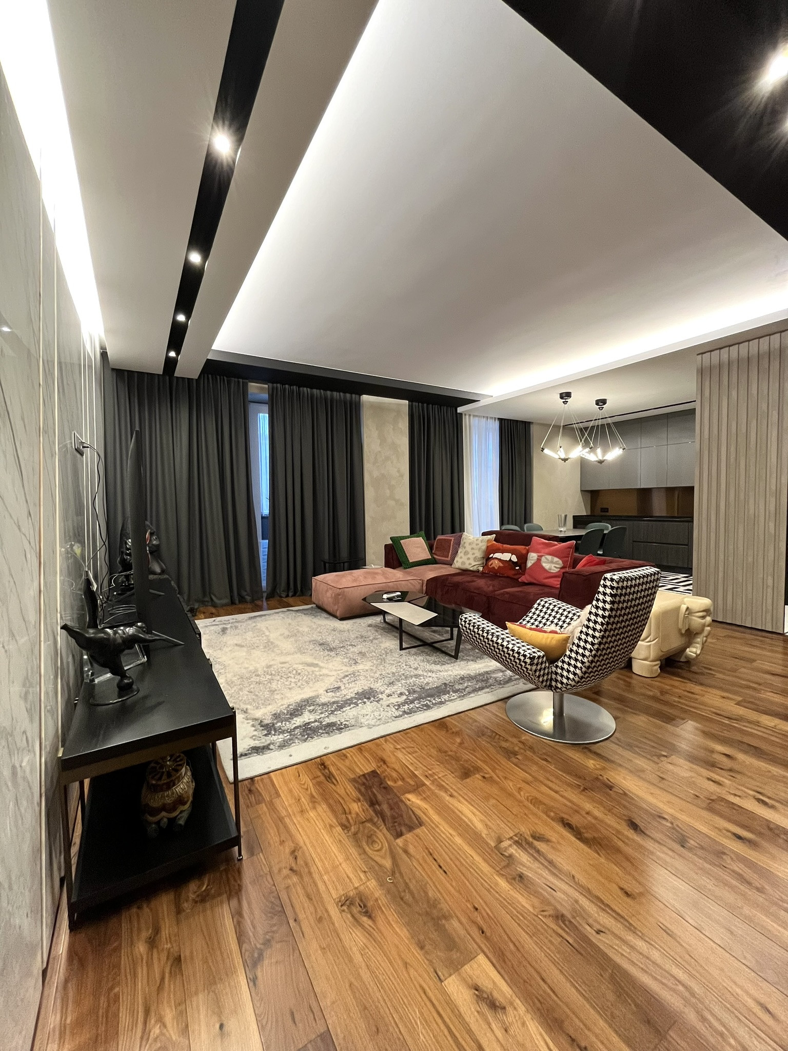 В квартире остается кухня GIULIA NOVARS  и вся встроенная техника Liebherr, Neff, Gaggenau. Сантехника AXOR премиальная линейка hansgrohe. Встроенная мебель мистер Дорс.