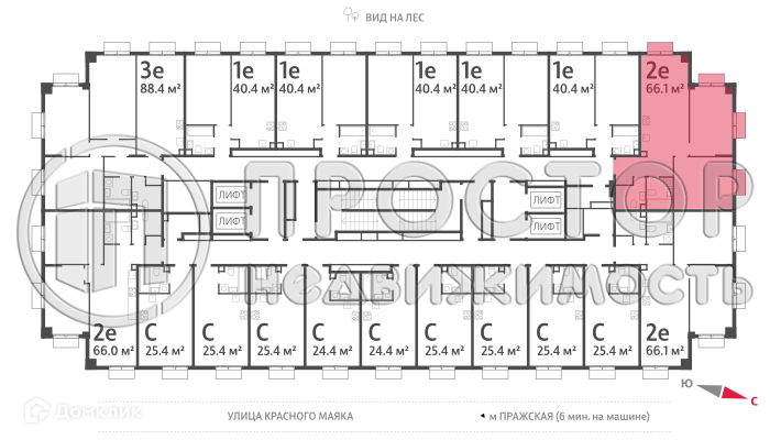 1-комнатная квартира, 40.5 м2, этаж 3 / 22, на продажу в Москве, жилой комплекс Парксайд, 4