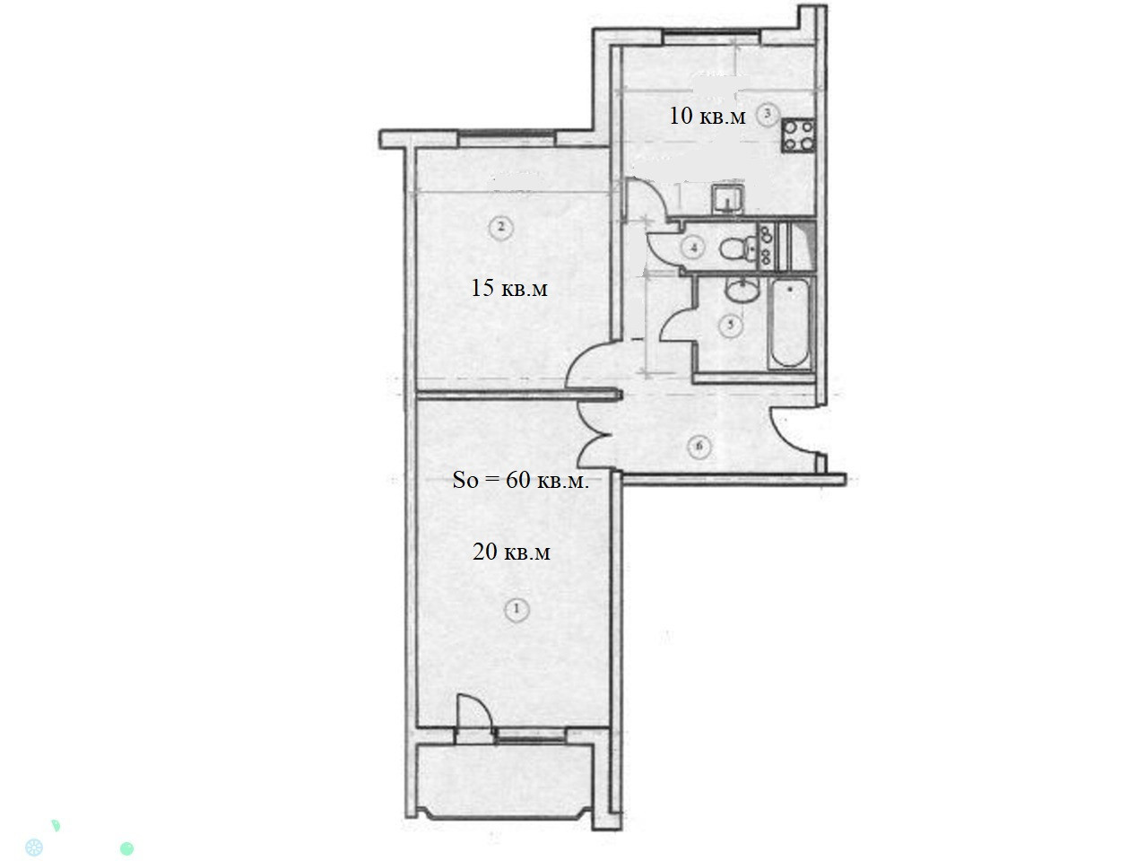 Общая площадь 60 м2