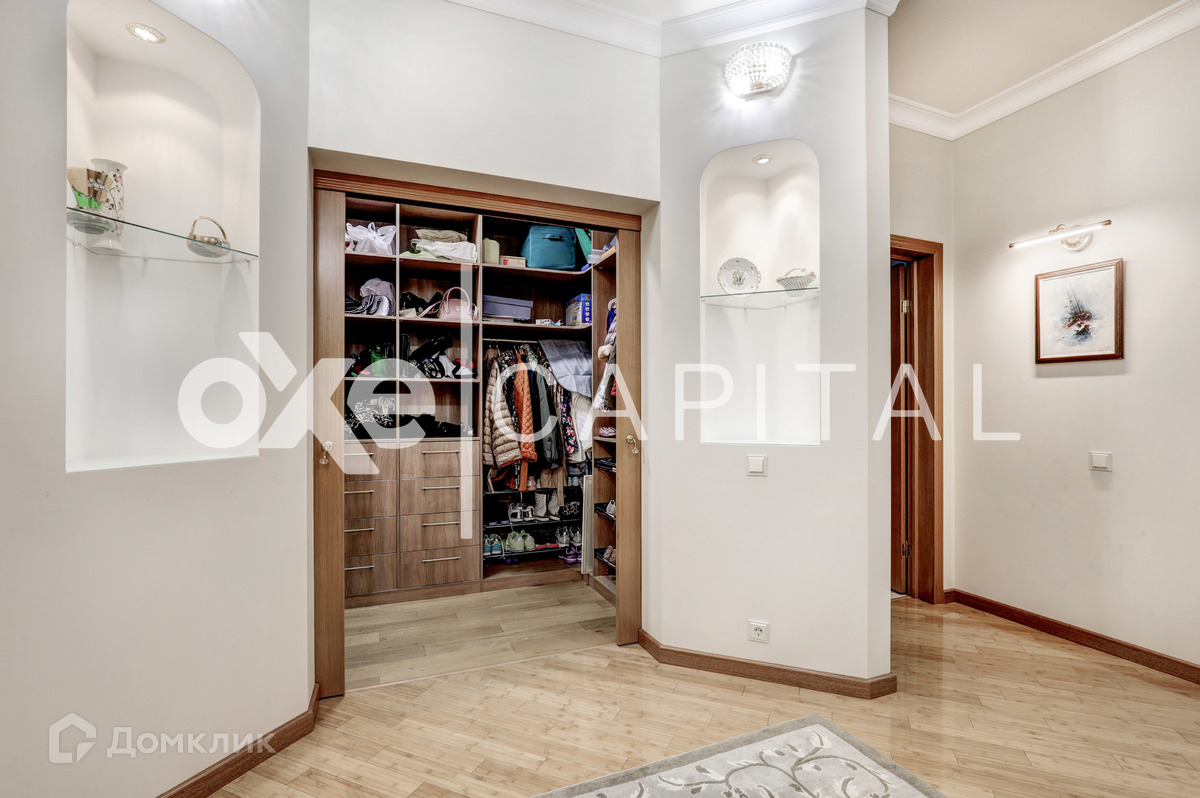 Также оборудована просторная гардеробная, где можно хранить вещи, гладильную доску и многое другое.