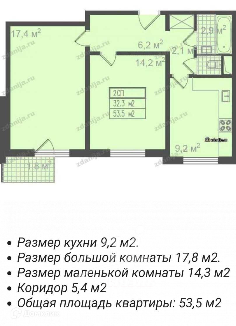 Общая площадь 53.5 м2