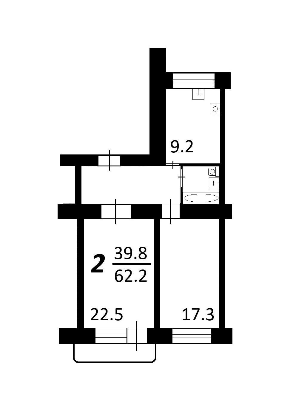 Общая площадь 62.2 м2