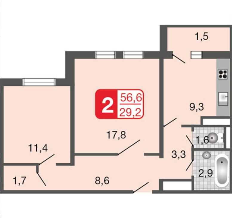 Общая площадь 56.1 м2