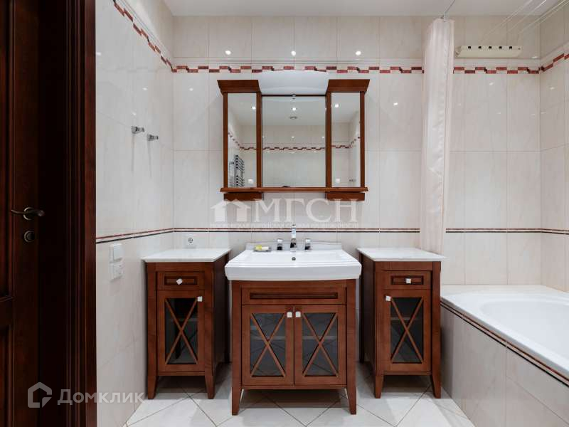 Квартира общей площадью 160, 4 кв. м. , расположена на 11 этаже, за счет чего имеет прекрасные видовые характеристики. Окна выходят на обе стороны дома.  Планировка: две спальни, объединены большой лоджией; кабинет; два санузла, гардеробная комната; просторная гостиная с видом на парк Мандельштама (усадьбу Трубецких); кухня с выходом в гостиную. В квартире выполнен качественный дизайнерский ремонт в стиле современная классика с применением дорогостоящих материалов европейских производителей.