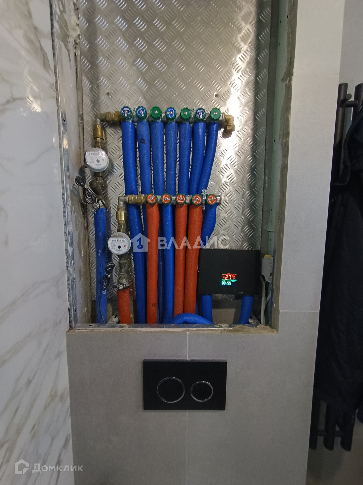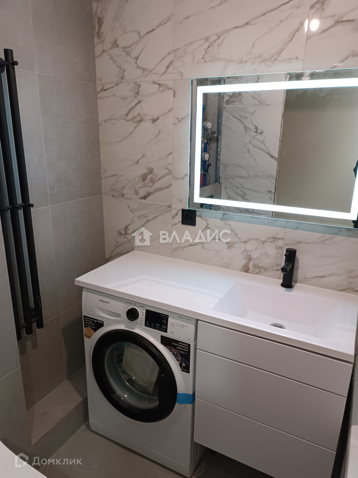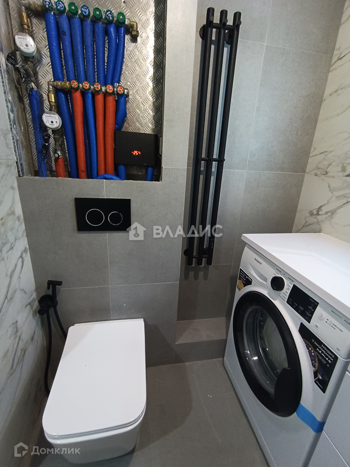 В ванной новые стояки ХВС, ГВС, установлен мощный электроводонагреватель на случай отключения горячей воды. Столешница камень, гигиенический душ, высокая душевая колонна.
