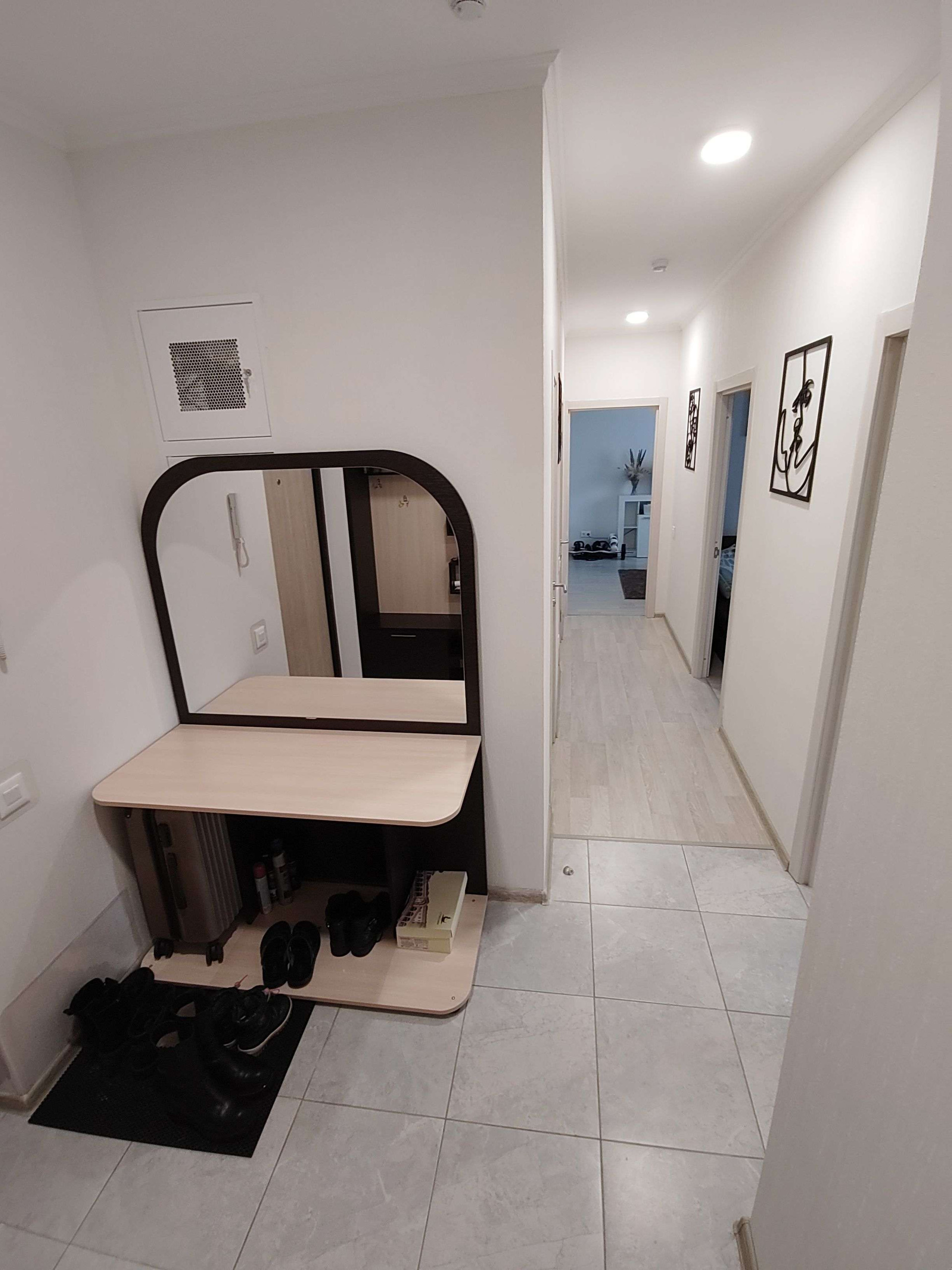 Квартира с качественным ремонтом: обои под покраску, напольное покрытие: плитка и ламинат, теплые полы, регулируемое отопление.