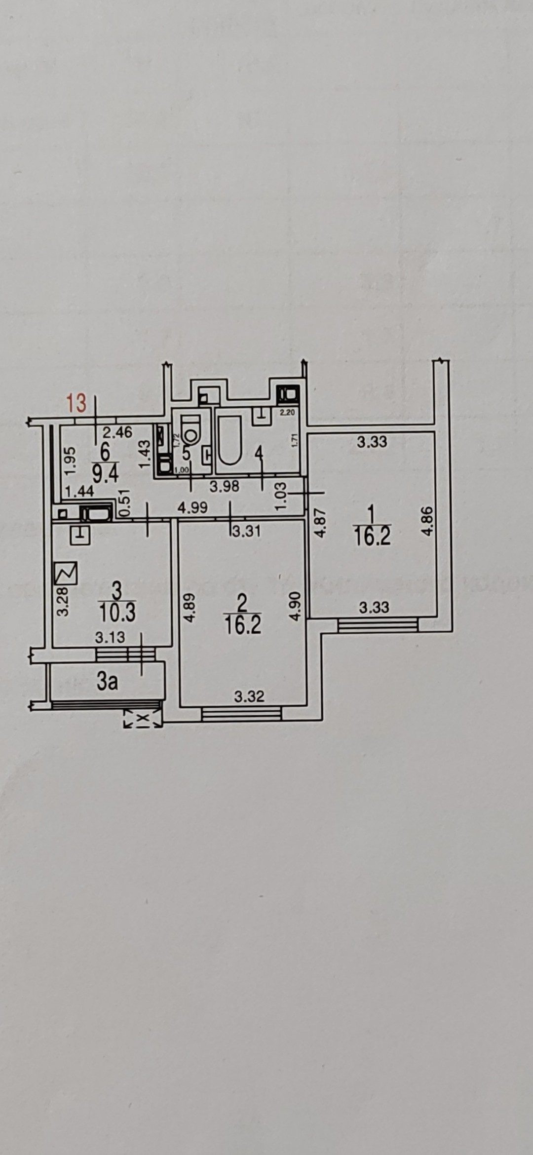 Жилая площадь 32.4 м2