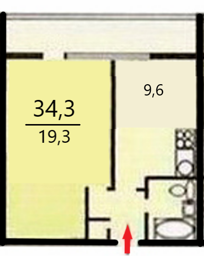 Общая площадь 34.3 м2