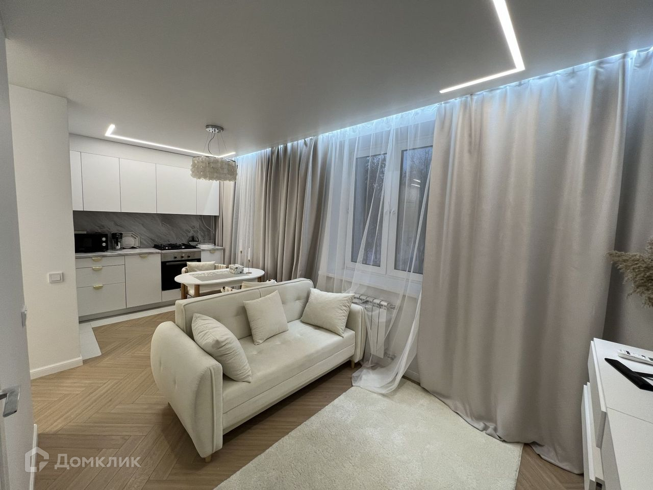 Функциональная современная планировка: кухня - гостиная, совмещенный санузел, уютная спальня. В квартире грамотно продуманы места для хранения вещей: в коридоре имеется гардеробная для верхних вещей, в спальне для повседневных.