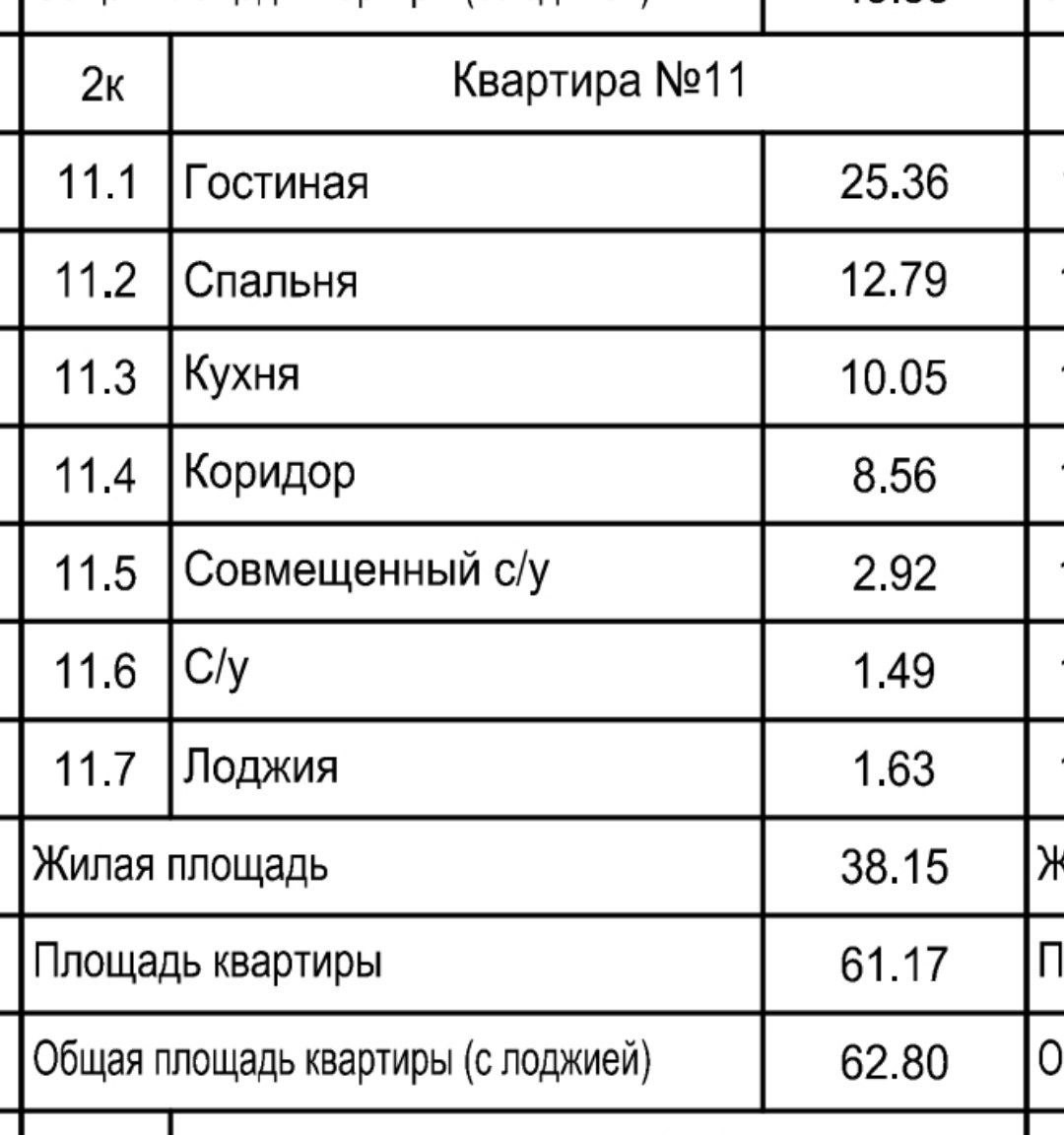 Общая площадь 62.8 м2