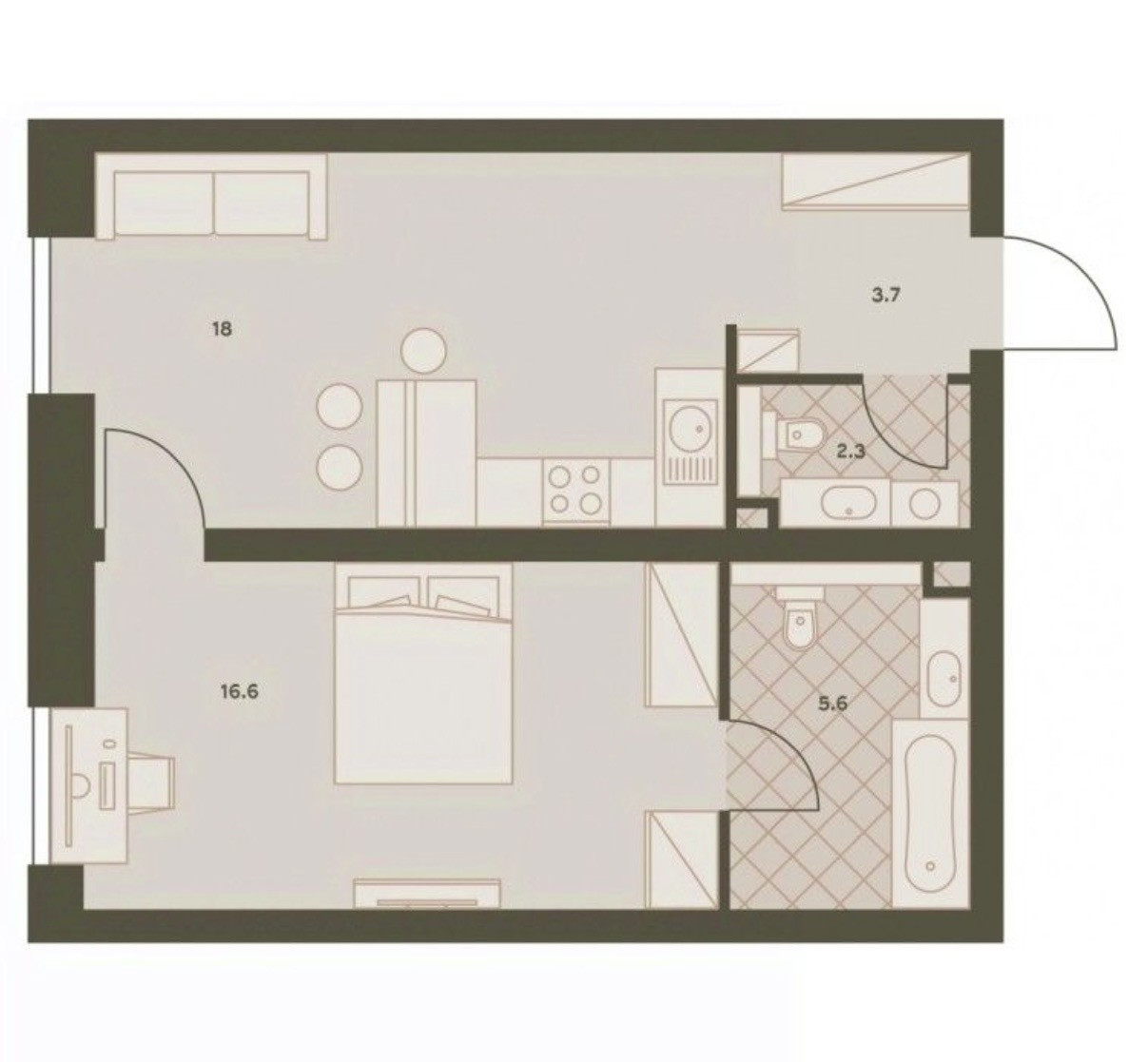 Общая площадь 46 м2