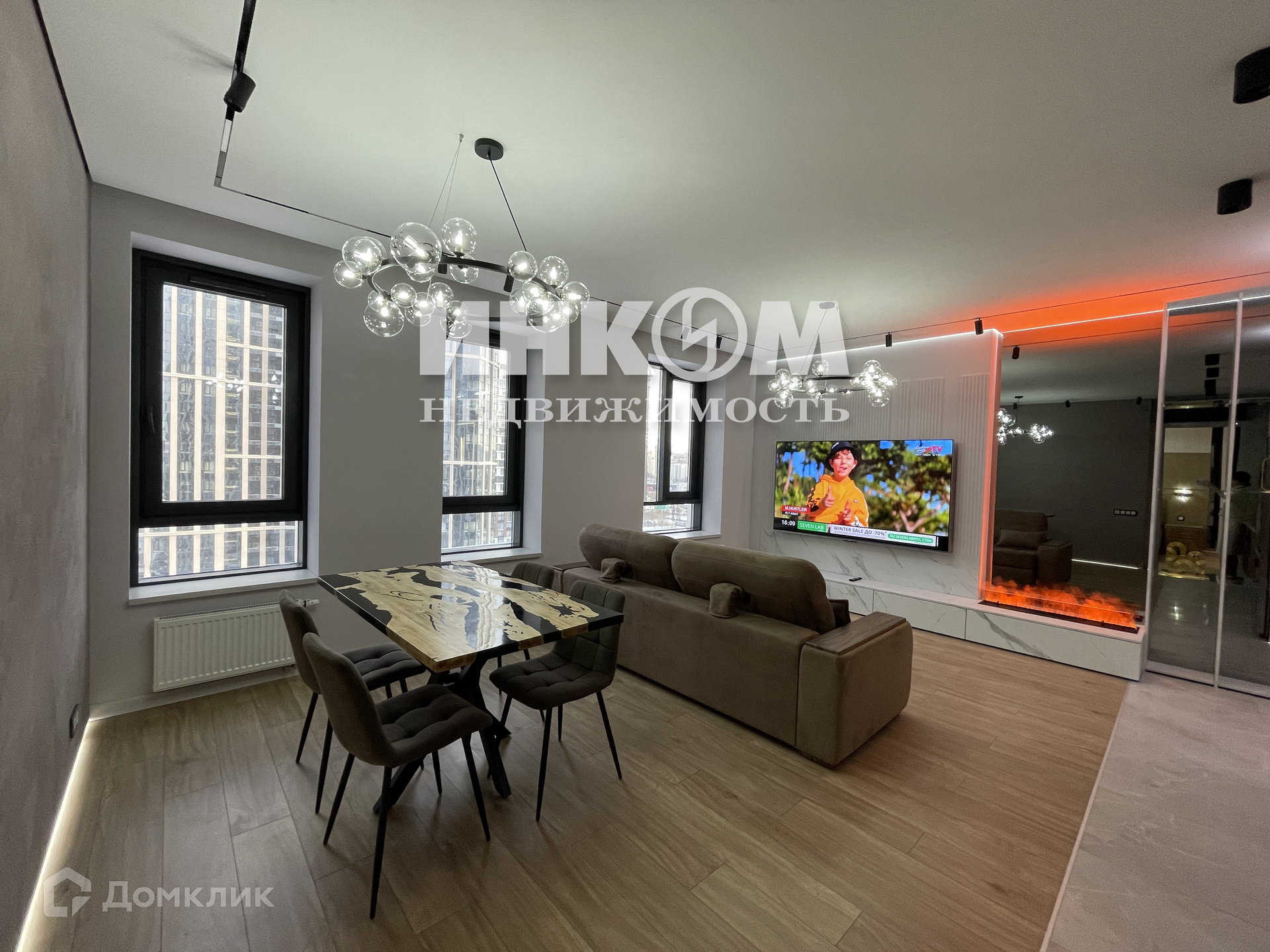 Продумано все - вентиляция, кондиционеры, система водоочистки, тёплые полы, входная дверь с электрозамком, открывающимся отпечатком пальца или сканом зрачка глаза, со встроенным домофоном и видеокамерой. Квартира оборудована всей необходимой техникой производства Bosh и Haier. Светильники производства Италии. Высокий этаж, окна во двор, не на дорогу. Вид из окна на фото.