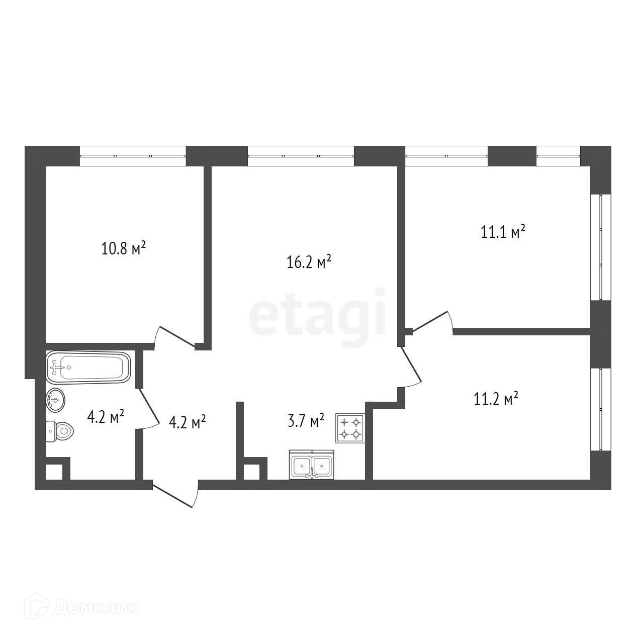 Общая площадь 61.4 м2
