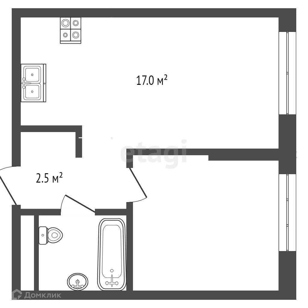 Площадь кухни 17 м2