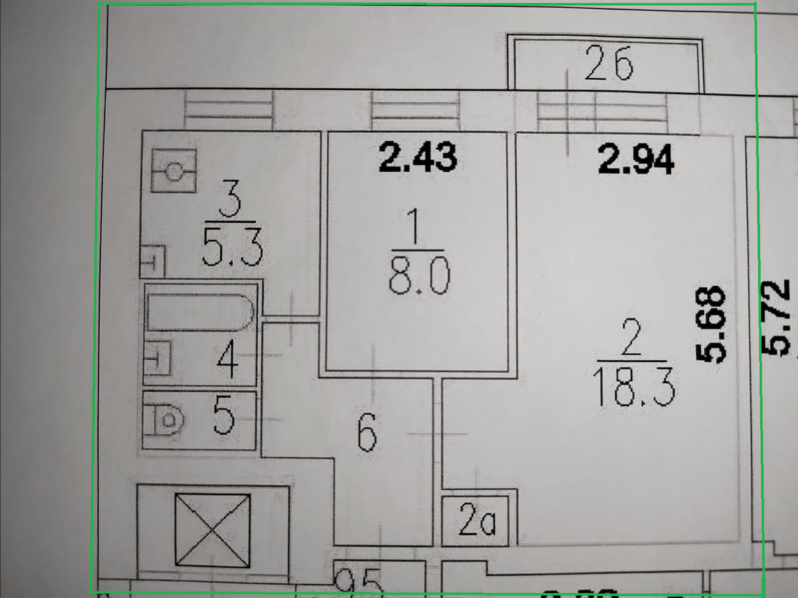 Жилая площадь 26.3 м2
