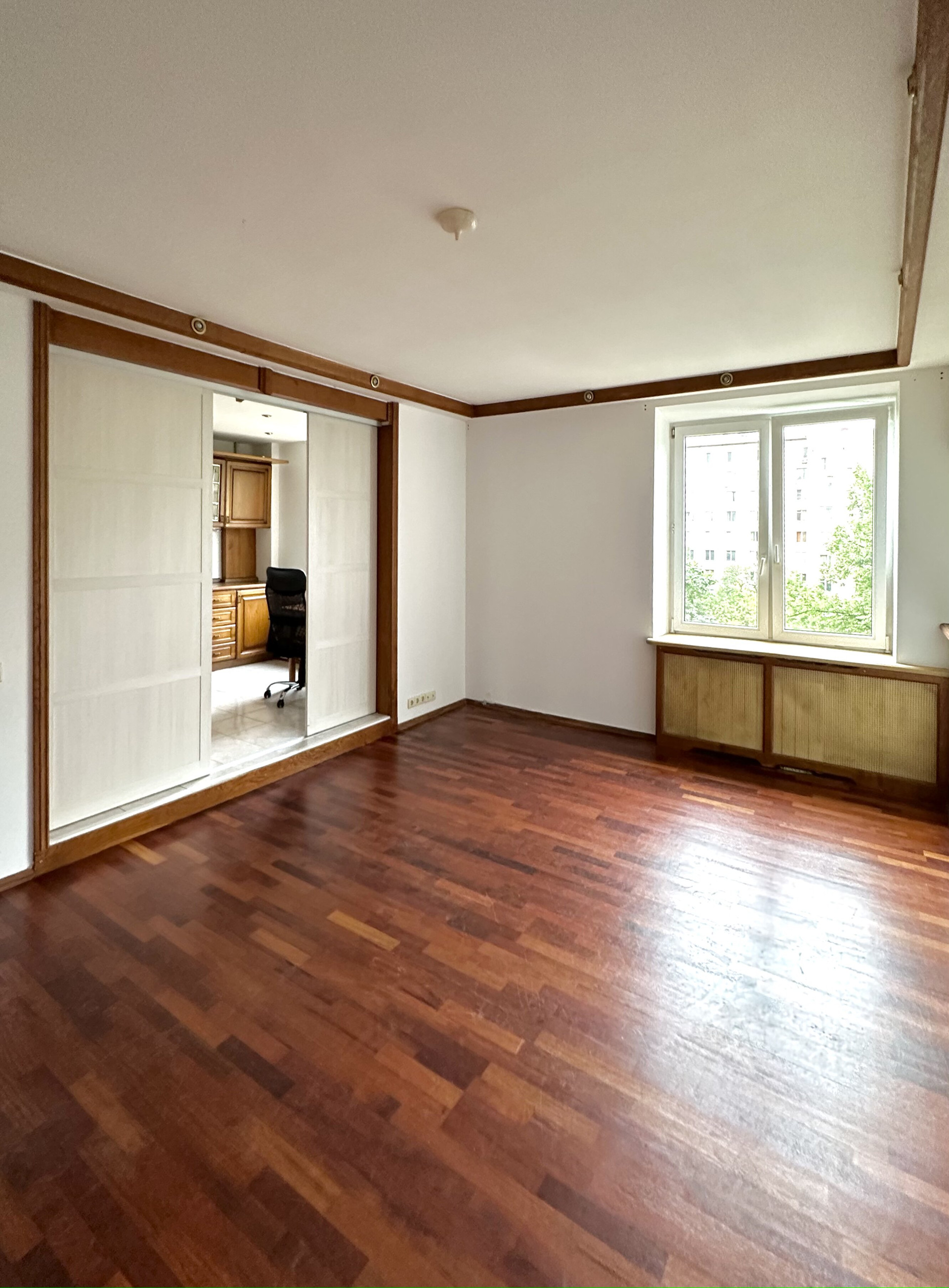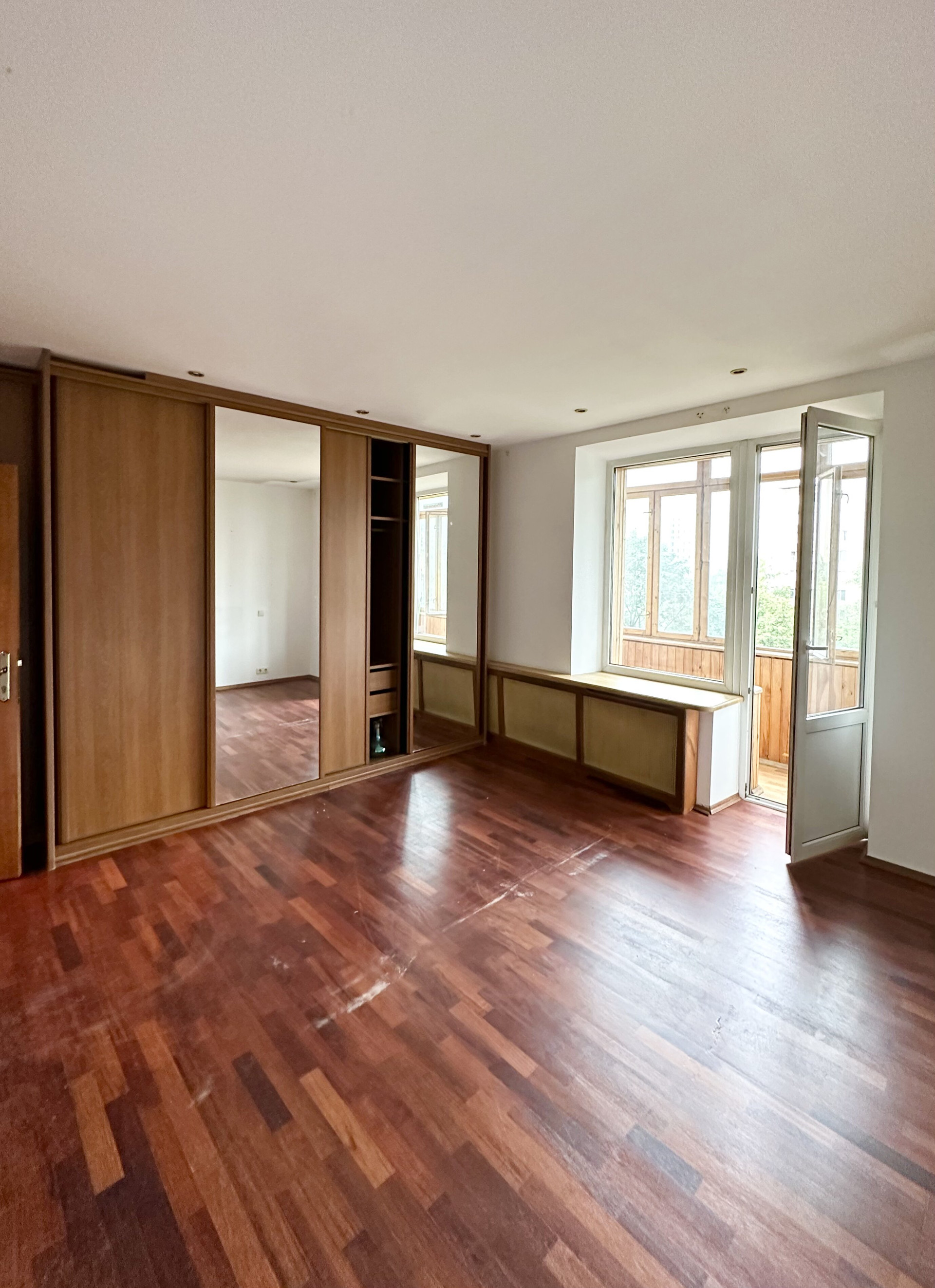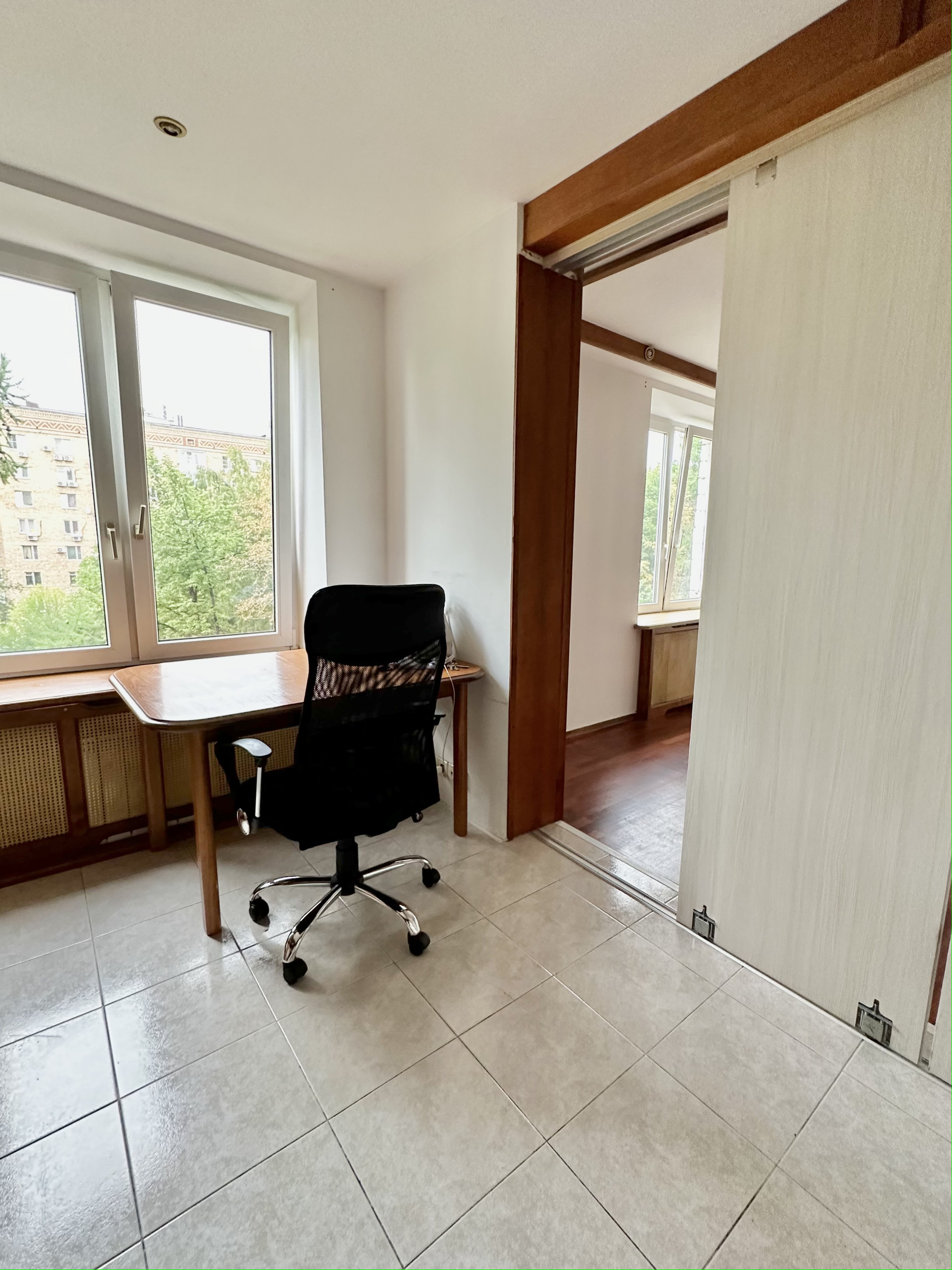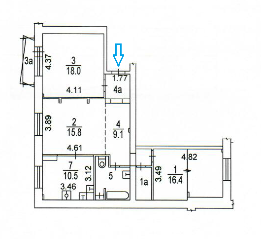 В квартире  выполнена и узаконена перепланировка: 2 изолированные жилые комнаты (18 кв.м. и 16,4 кв.м.), просторная гостиная, кухонная зона, отделенная мобильными перегородками, также есть удобная кладовая для хранения вещей и инвентаря. Квартира двусторонняя: одно окно выходит на восток, остальные три на запад в тихий двор.