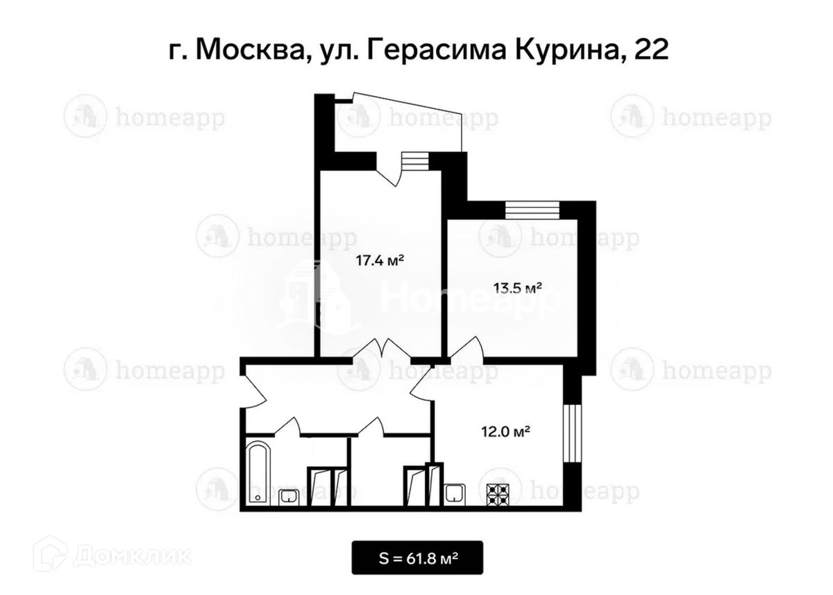 Общая площадь 61.8 м2