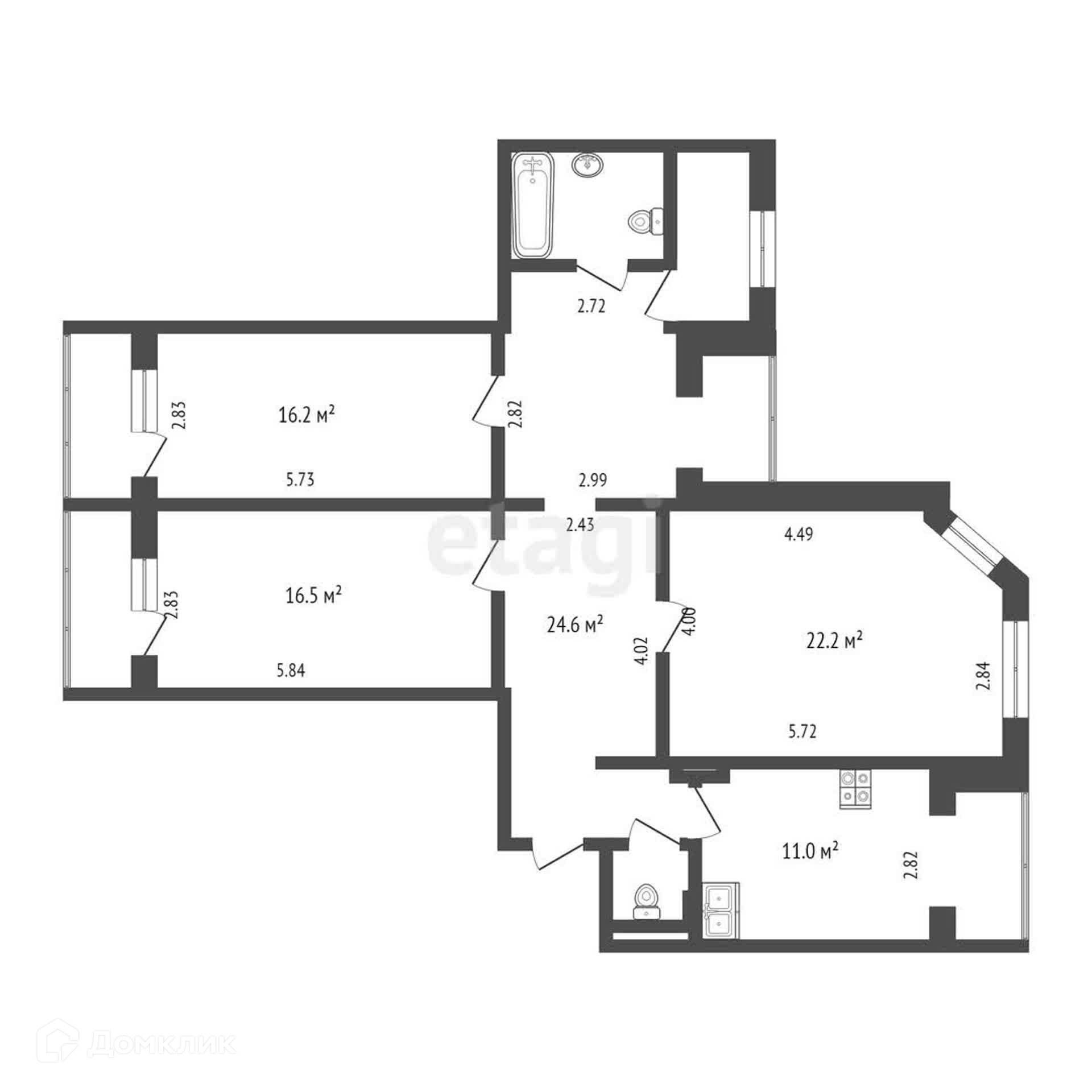 3-комнатная квартира, 100 м2, этаж 8 / 12, на продажу в Москве, Нижегородская улица, 56А