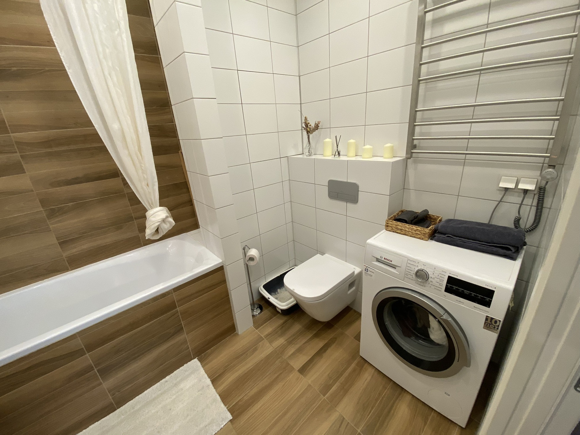 В апартаментах произведен дизайнерский ремонт. Апартаменты полностью мебелированы и подготовлены к проживанию: встроенная кухня с бытовой техникой BOSCH, встроенная мебель, изготовленная под заказ.