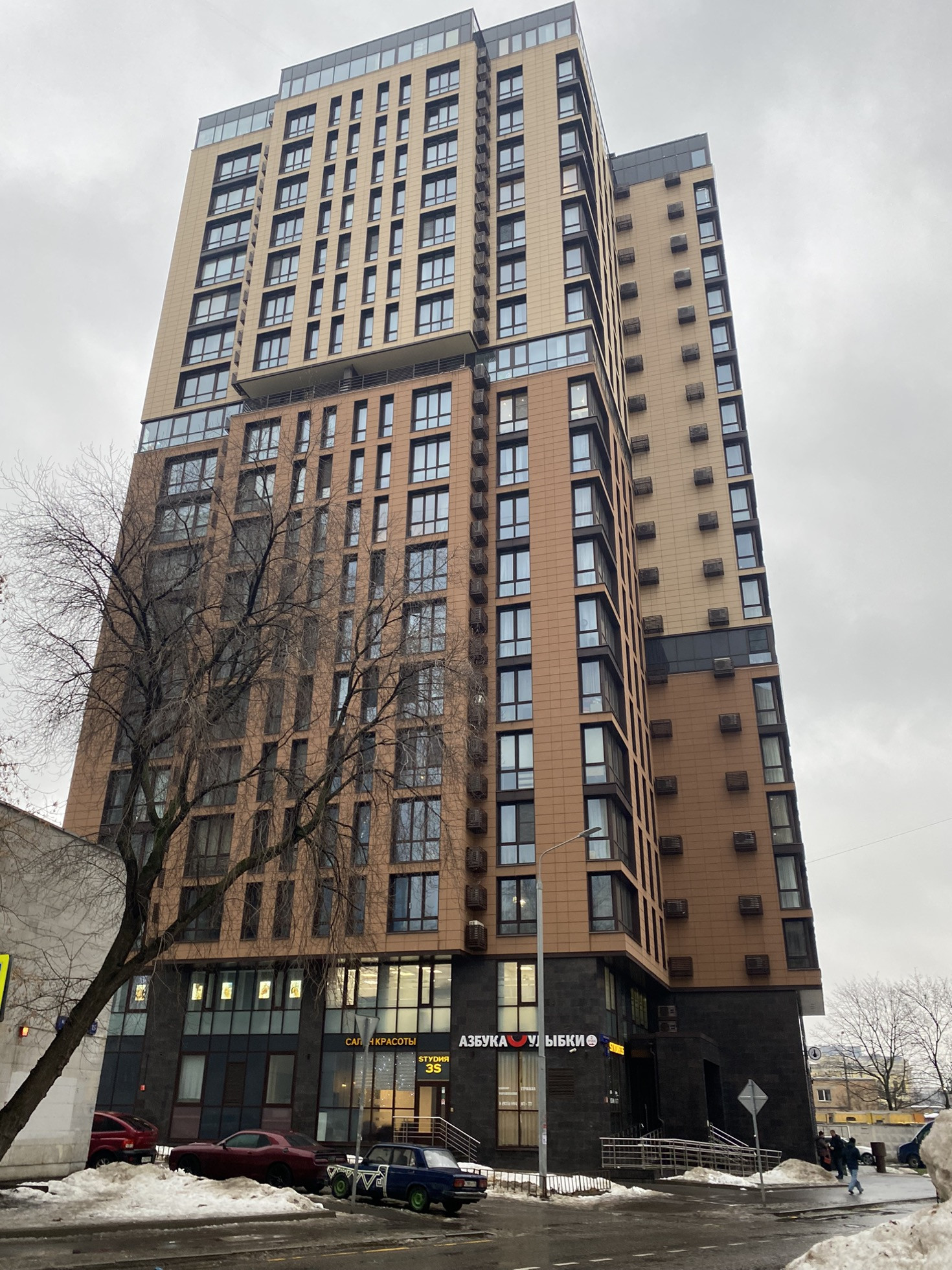 Описание: односекционное монолитное здание высотой 19 этажей, которое отличается эффектной современной архитектурой. Наружный дизайн вентилируемых навесных фасадов дома выполнен с помощью керамогранитной плитки и натурального камня пастельных оттенков. Проект достроен и сдан в эксплуатацию.