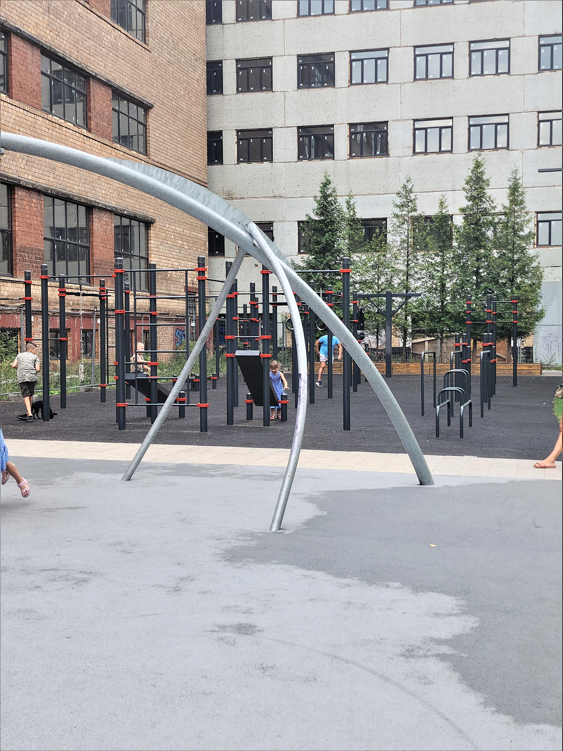 Внутри комплекса много детских площадок и спортивных зон: от футбольного поля и качелей до зоны воркаута.