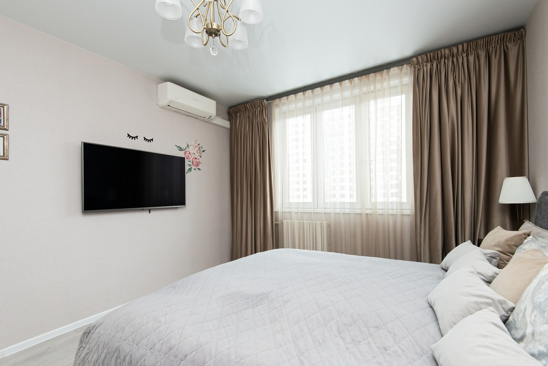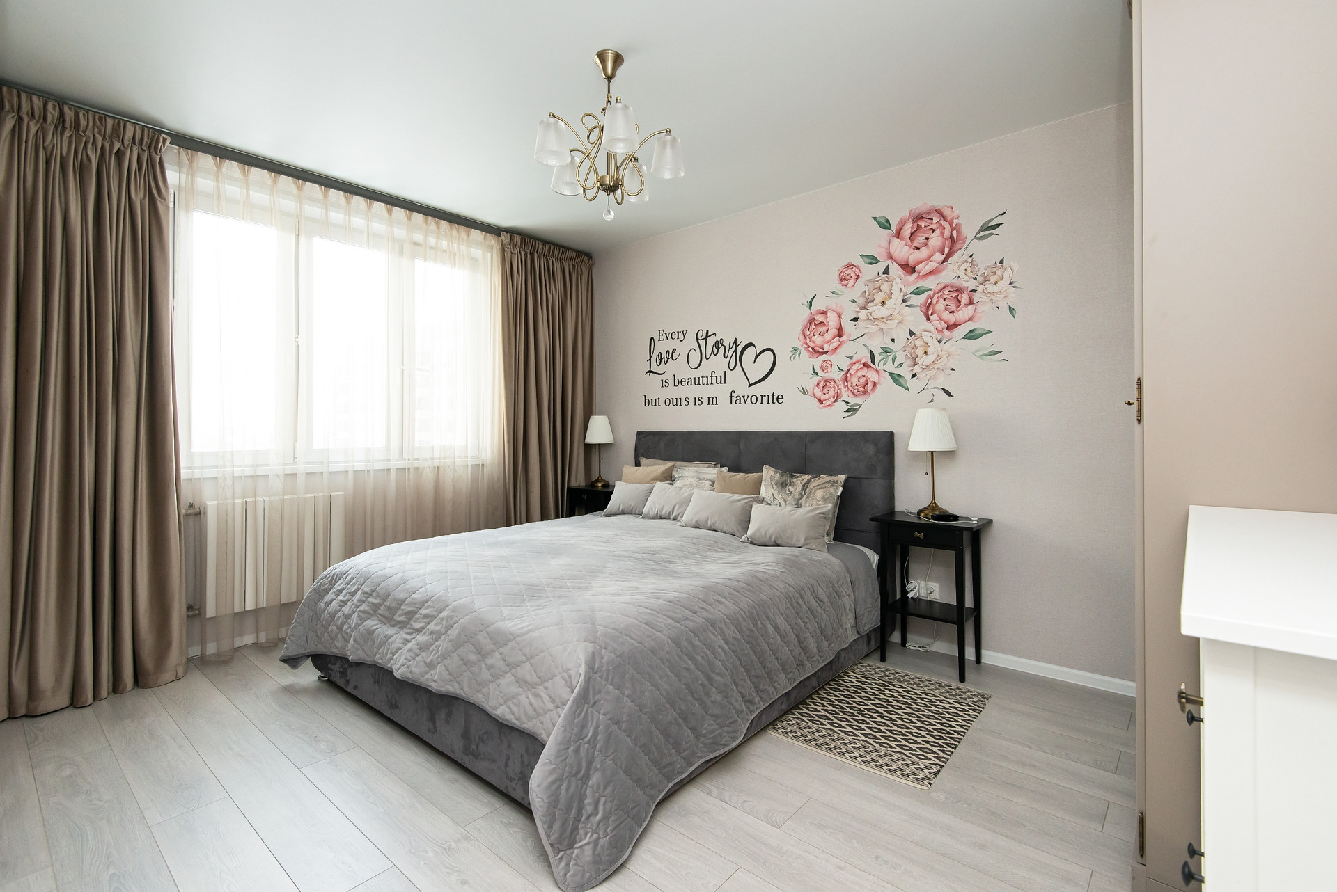 - Просторная квартира с качественной отделкой в нейтральных и спокойных тонах;