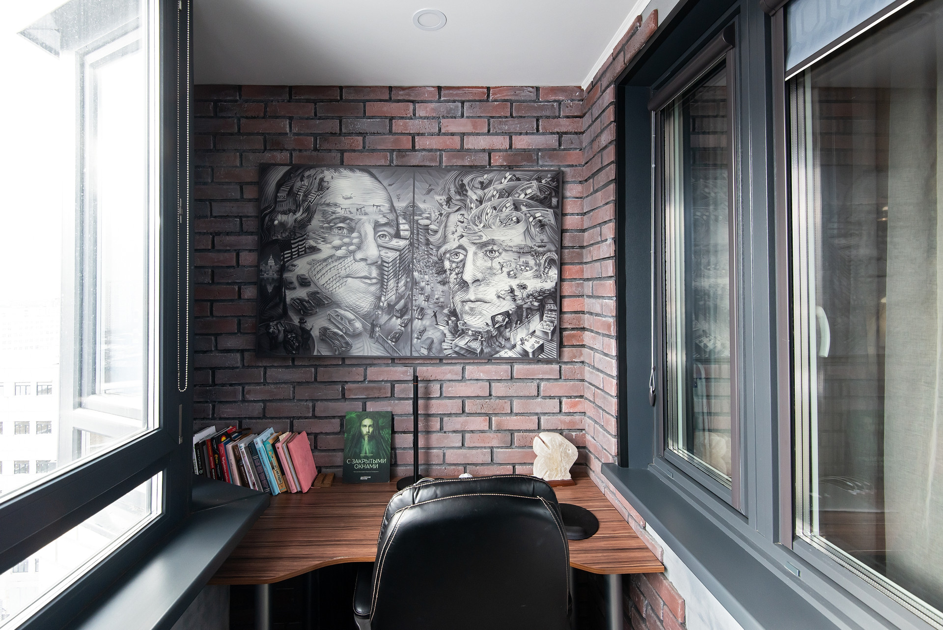 - Большая кухня-гостиная 14 кв.м с полуэркерным окном и панорамным видом на город