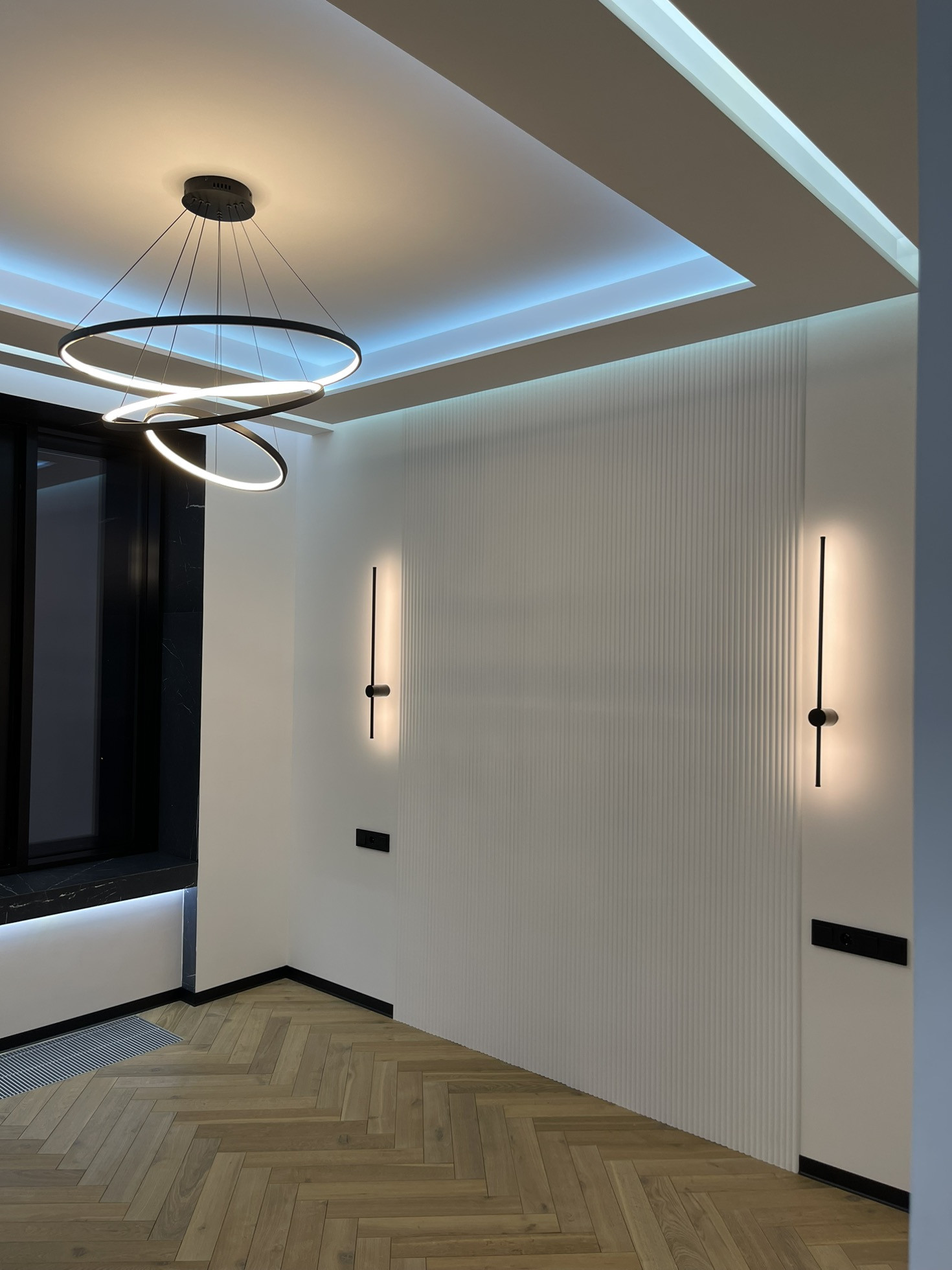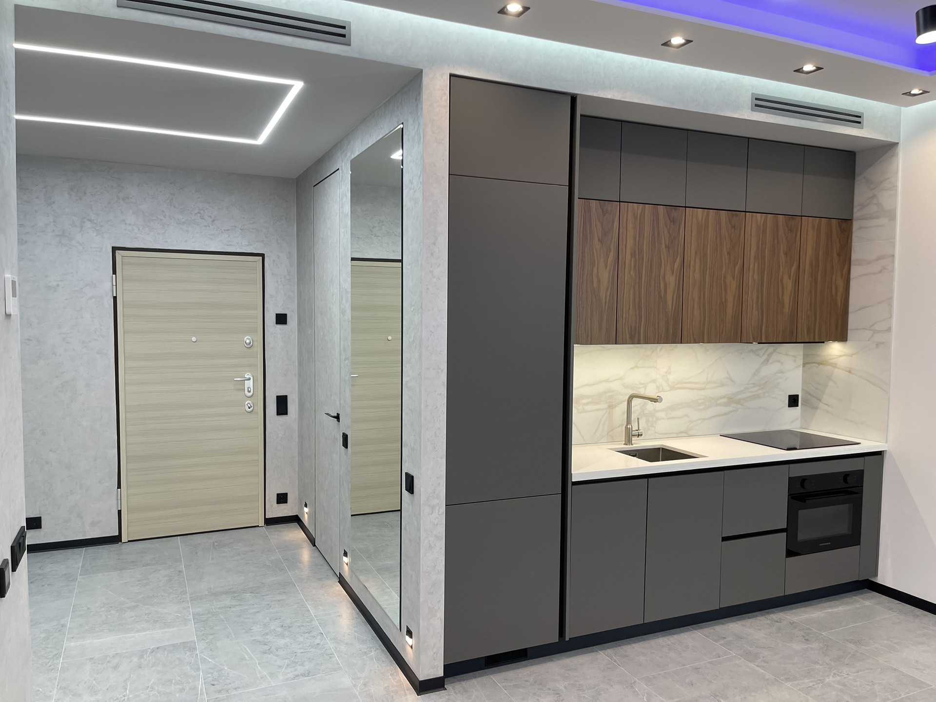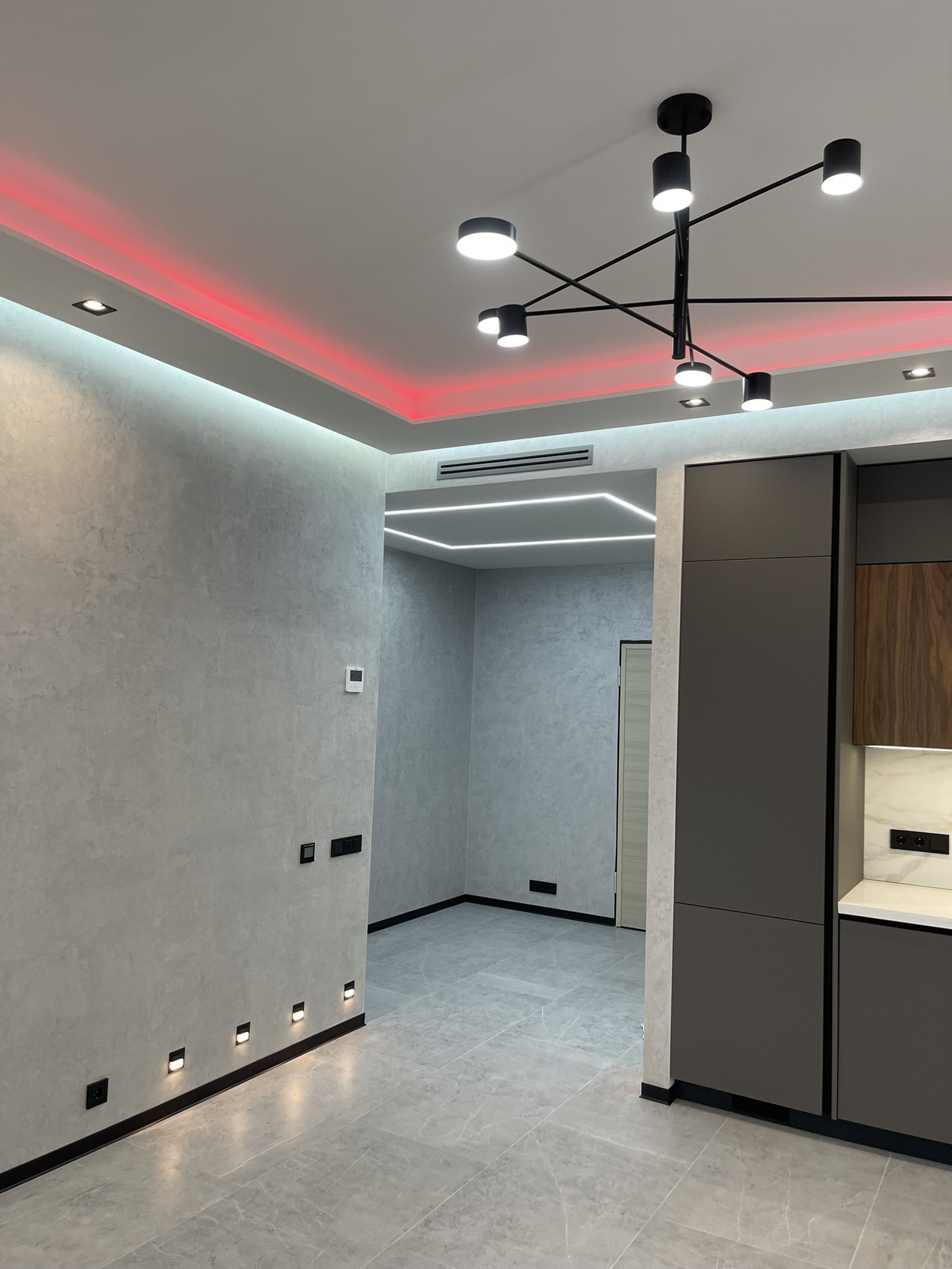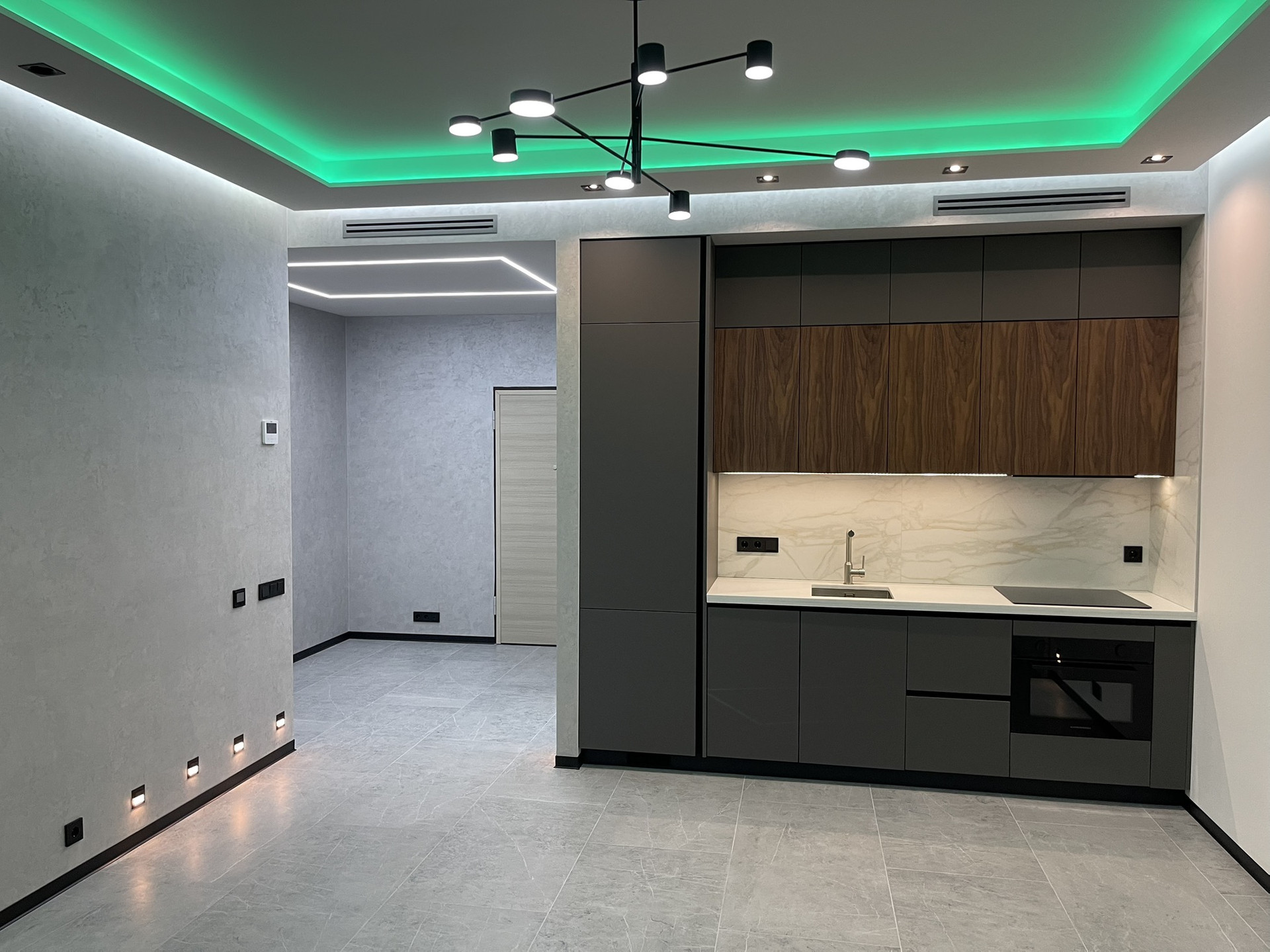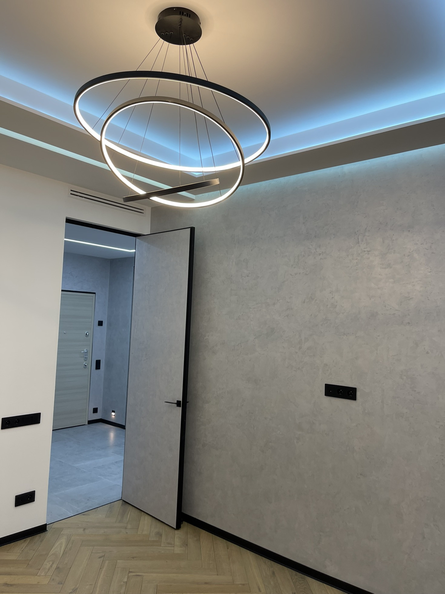 Канальная система кондиционирования Lg и система приточно-вытяжной вентиляции выполнена на металической трассе по проекту и согласованна с УК.