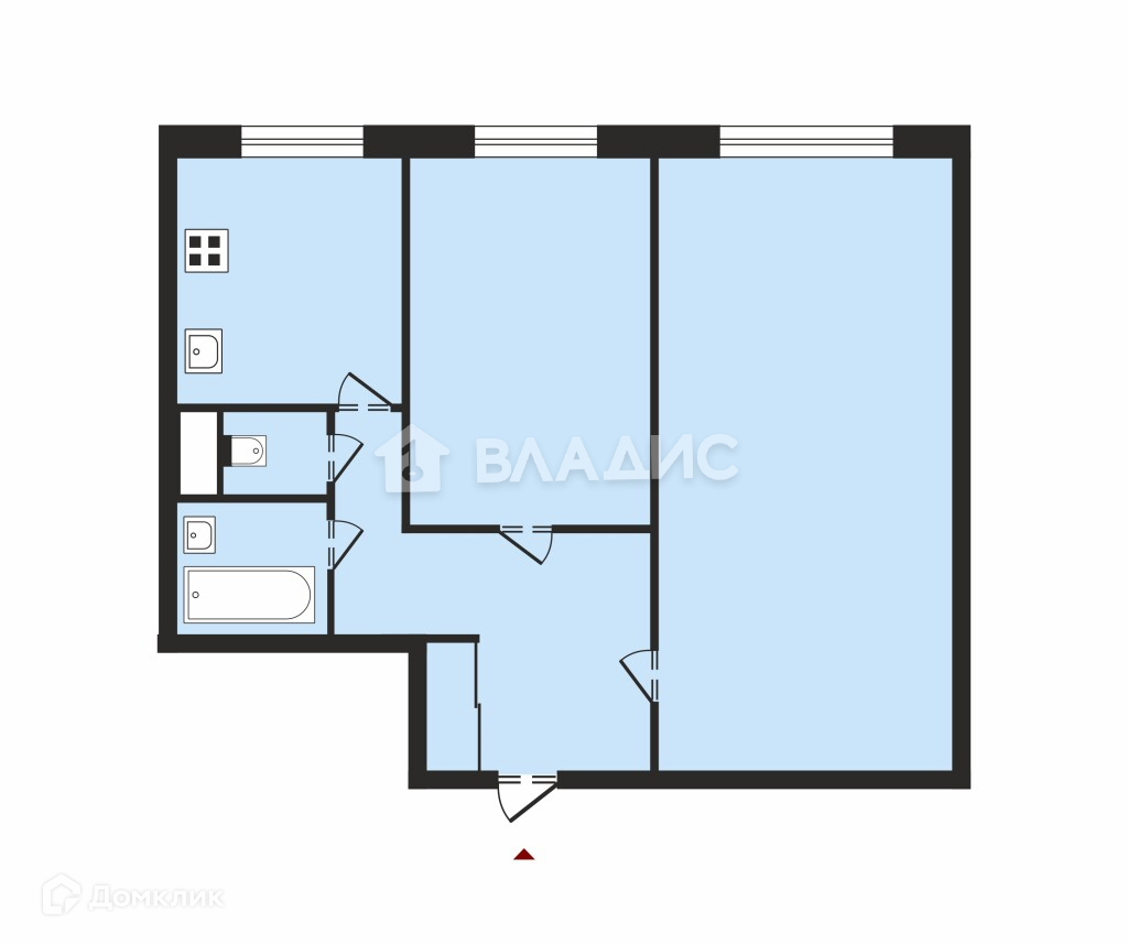 2-комнатная квартира с линейным расположением комнат.