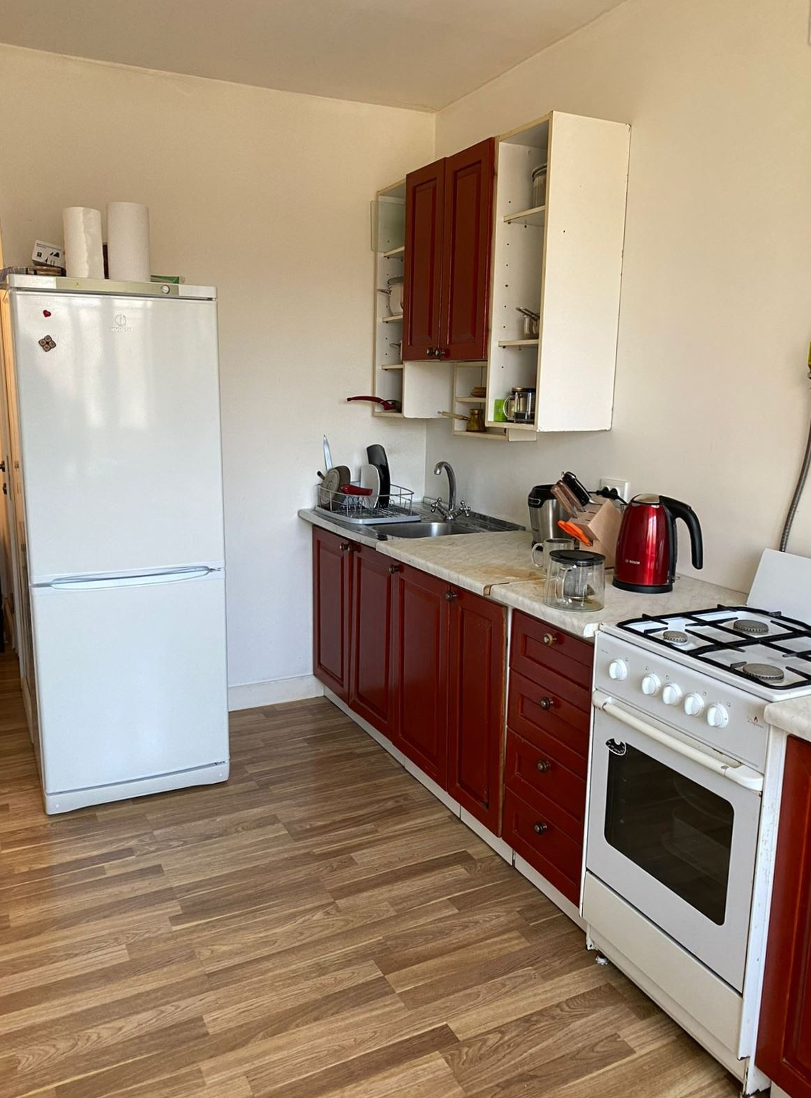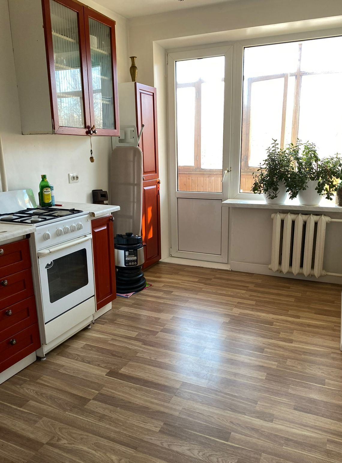 Комната оборудована гардеробной, на кухне балкон.