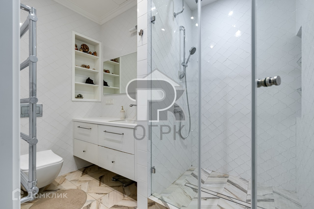 В квартире 4 с/у: 2 гостевых, для детей и самый большой хозяйский с входом из мастер-спальни.