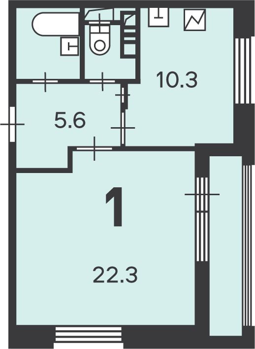 Жилая площадь 22.3 м2