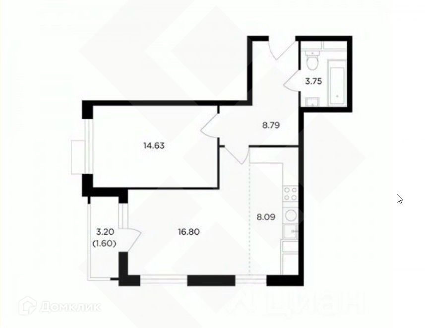 Общая площадь 54 м2