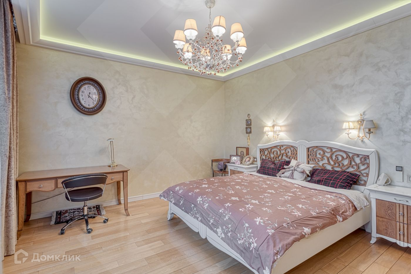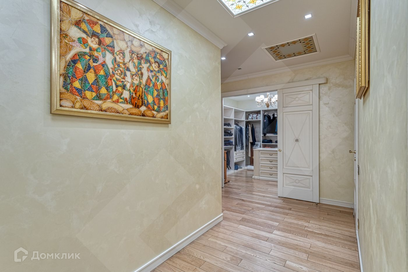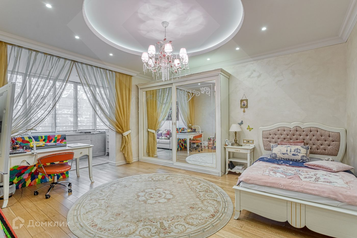 Функциональная планировка, ни один квадратный метр не остался без внимания: просторная гостиная комната, светлая кухня с лоджией, оборудованной под кабинет, мастер-спальня (с собственным санузлом и гардеробной комнатой), три дополнительных спальных комнаты, несколько санузлов, один из которых гостевой, просторная постирочная с душевой, большая  гардеробная, просторный холл. В квартире выполнен дизайнерский ремонт с использованием премиальных материалов. Вся мебель и техника европейских производителей.
