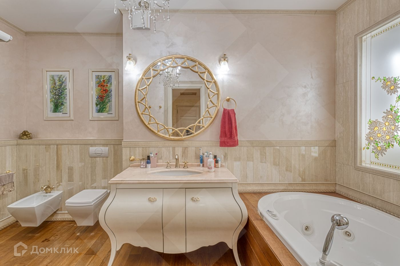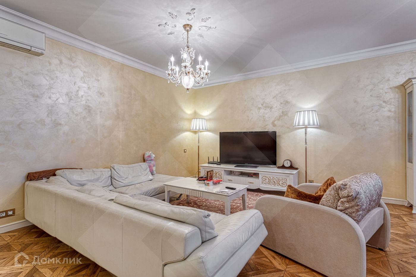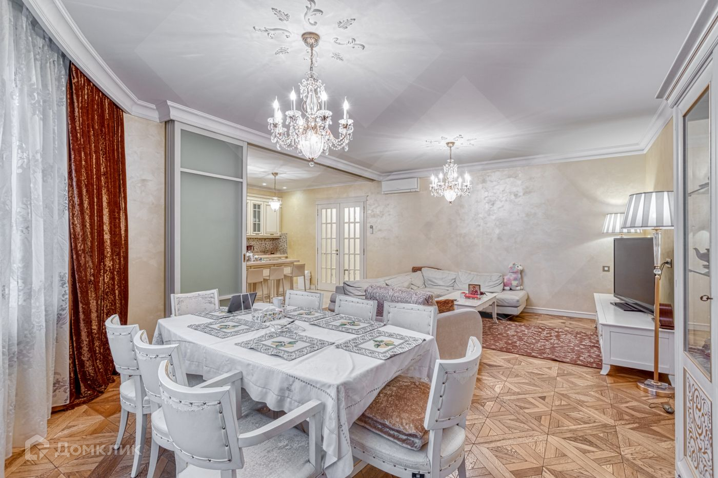 Интерьер квартиры представлен в классическом стиле. В гостиной и холле  на полу – керамогранит с подогревом, в комнатах  - дубовый паркет.
