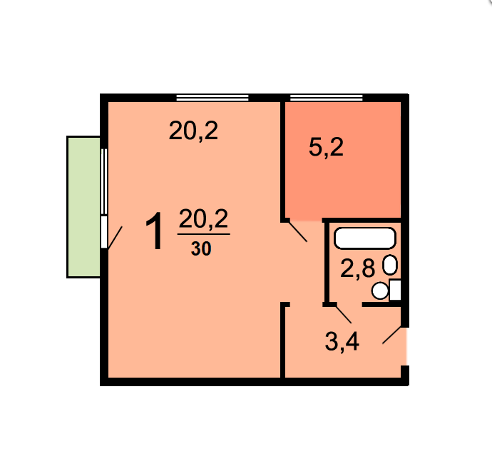 Общая площадь 30 м2