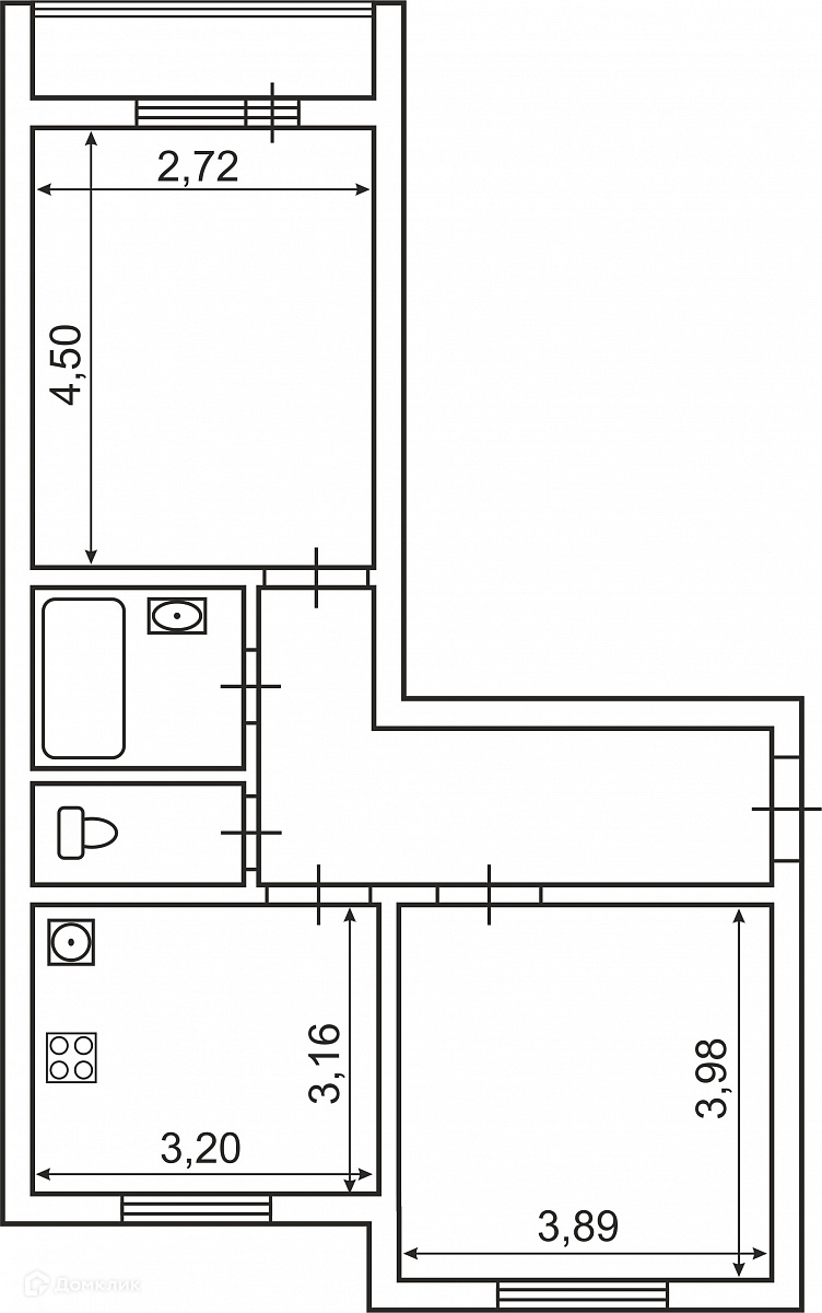 Общая площадь 50.7 м2