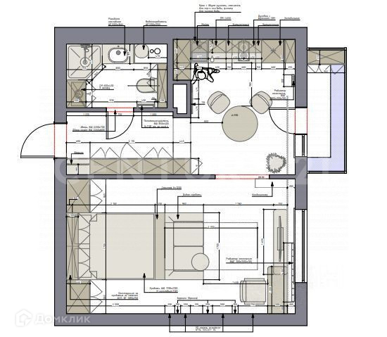 - Совмещенная кухня-прихожая 14 м2;