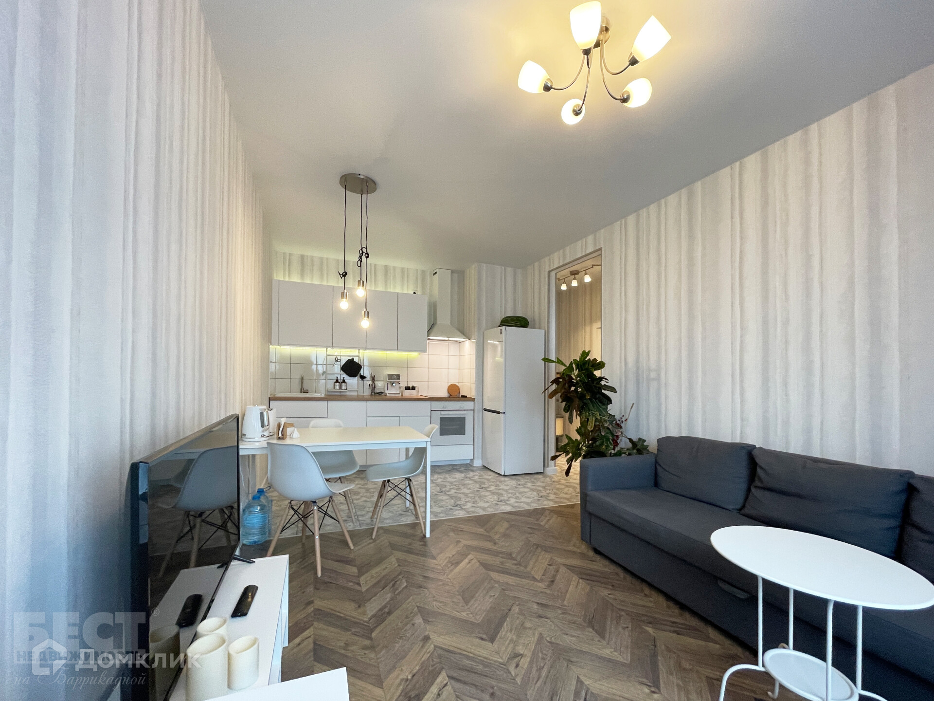 качественным  ремонтом. Ремонт делался для себя в стиле современная классика.