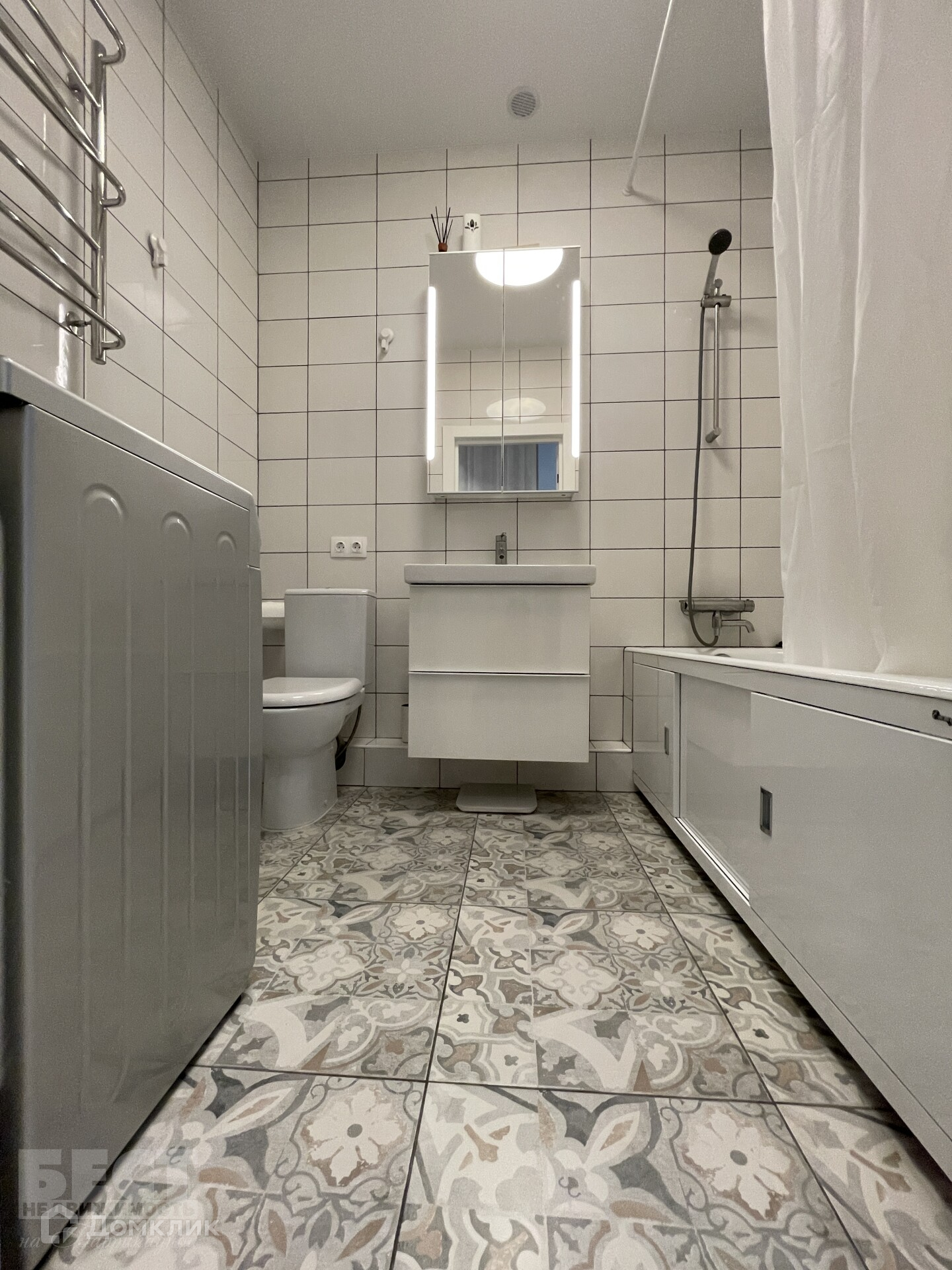 Пол  ламинат.  В  квартире  установлен  кондиционер.    Встроенная кухня  с  техникой: варочная   панель, духовой  шкаф, посудомоечная машина, вытяжка.  Стиральная машина, ванная чугунная фирмы «Якобс делафон»,  санузел  совмещенный.