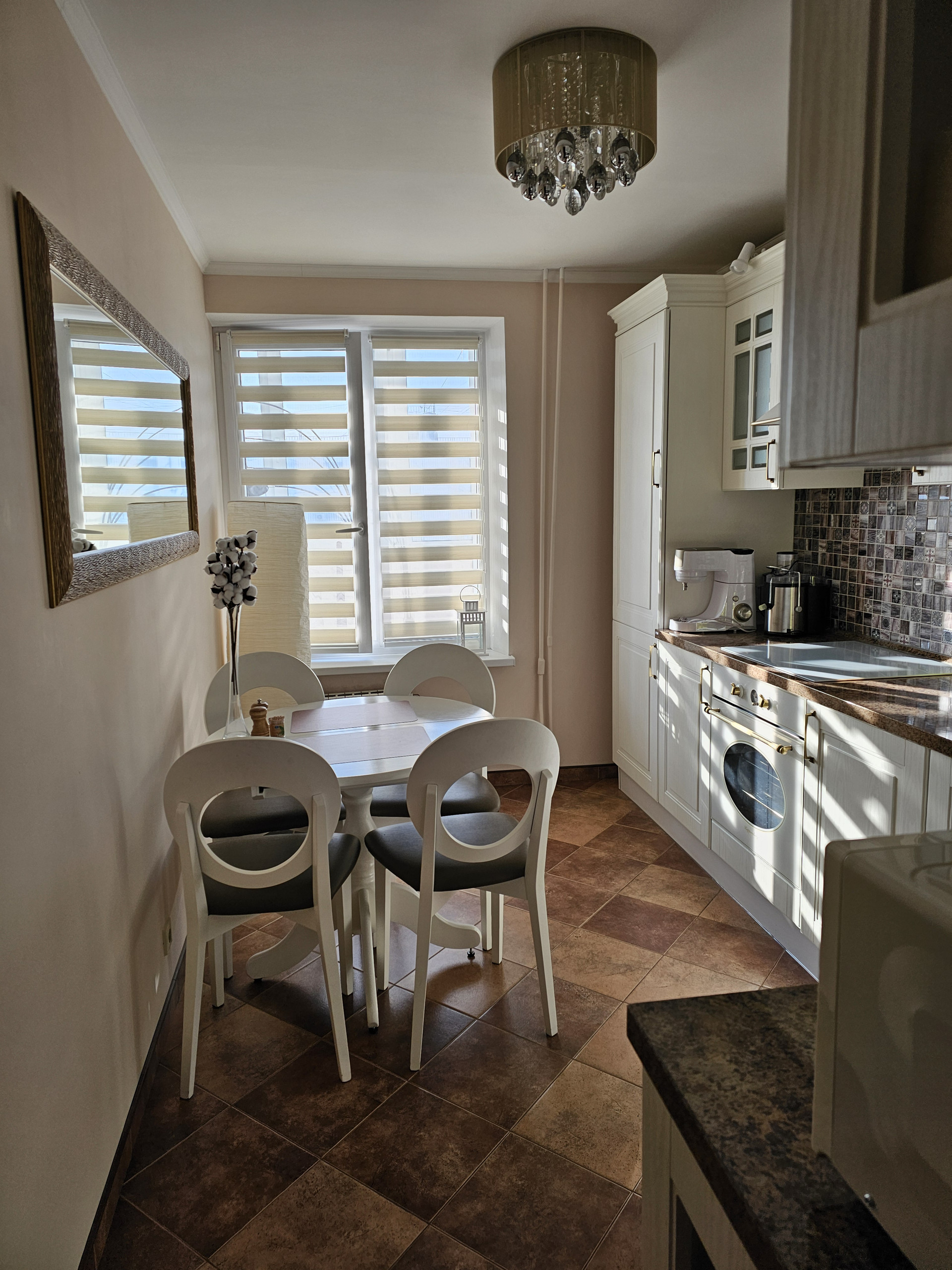 Укомплектована мебелью на заказ (диван, гардеробная) и бытовой техникой Kuppersberg (стиральная, посудомоечная машина, духовой шкаф, индукционная плита, холодильник, вытяжка), входит в стоимость квартиры. Комната 20 кв.м. зонирована на гостиную с диваном (раскладывается в спальное место 200Х200) и гардеробную. Дополняет жилое пространство большая лоджия 4 кв.м. (теплый пол) с вместительными местами хранения по обеим сторонам. Кухня 10 кв.м. в светлых тонах имеет все необходимое оснащение.