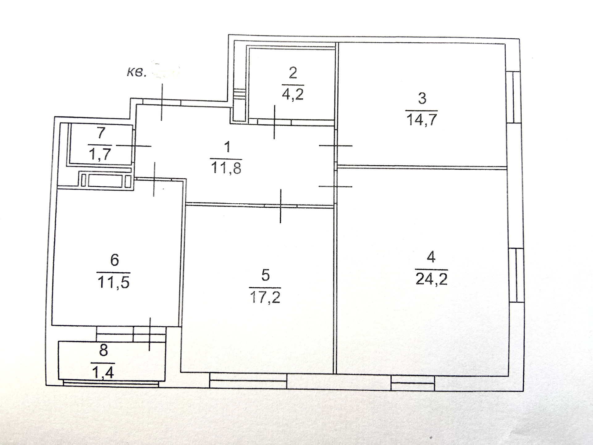 Жилая площадь 56.3 м2