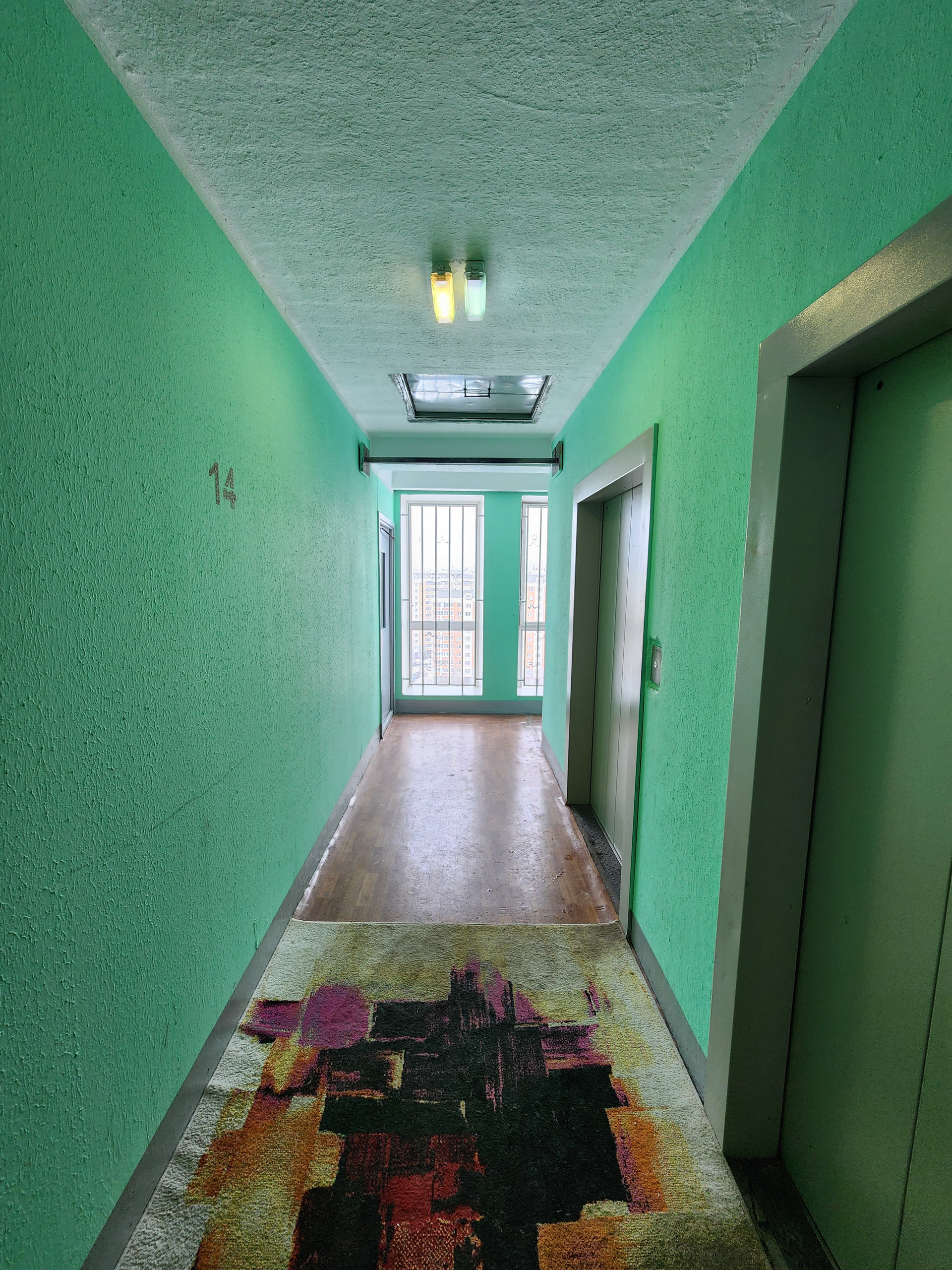 Чистый пoдъeзд, 2 лифтa, oдин лифт (гpузовой).