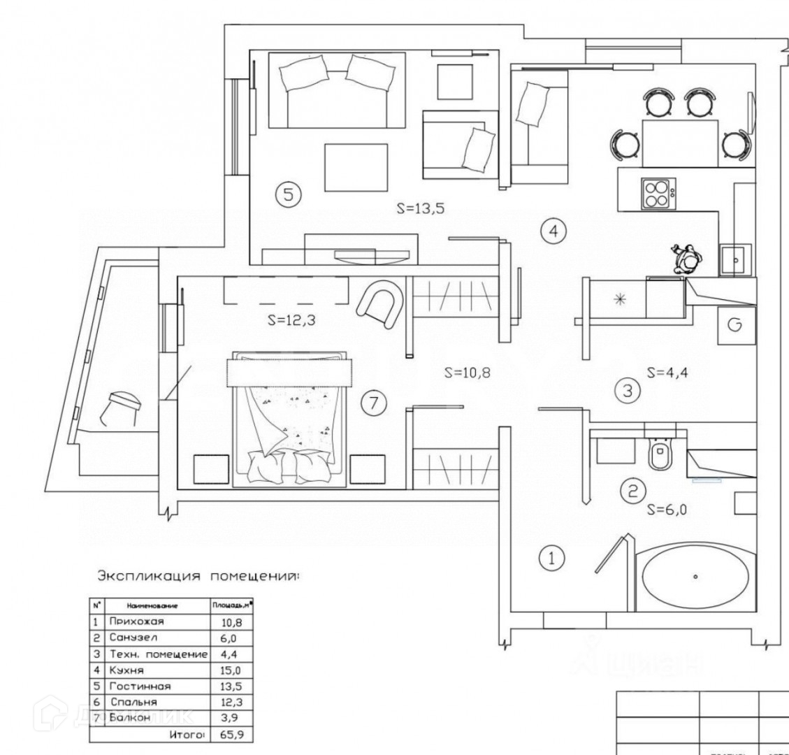 Общая площадь 61.8 м2;