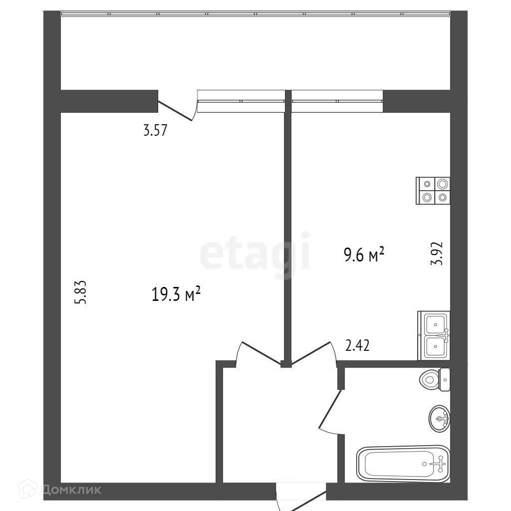Общая площадь 34.1 м2