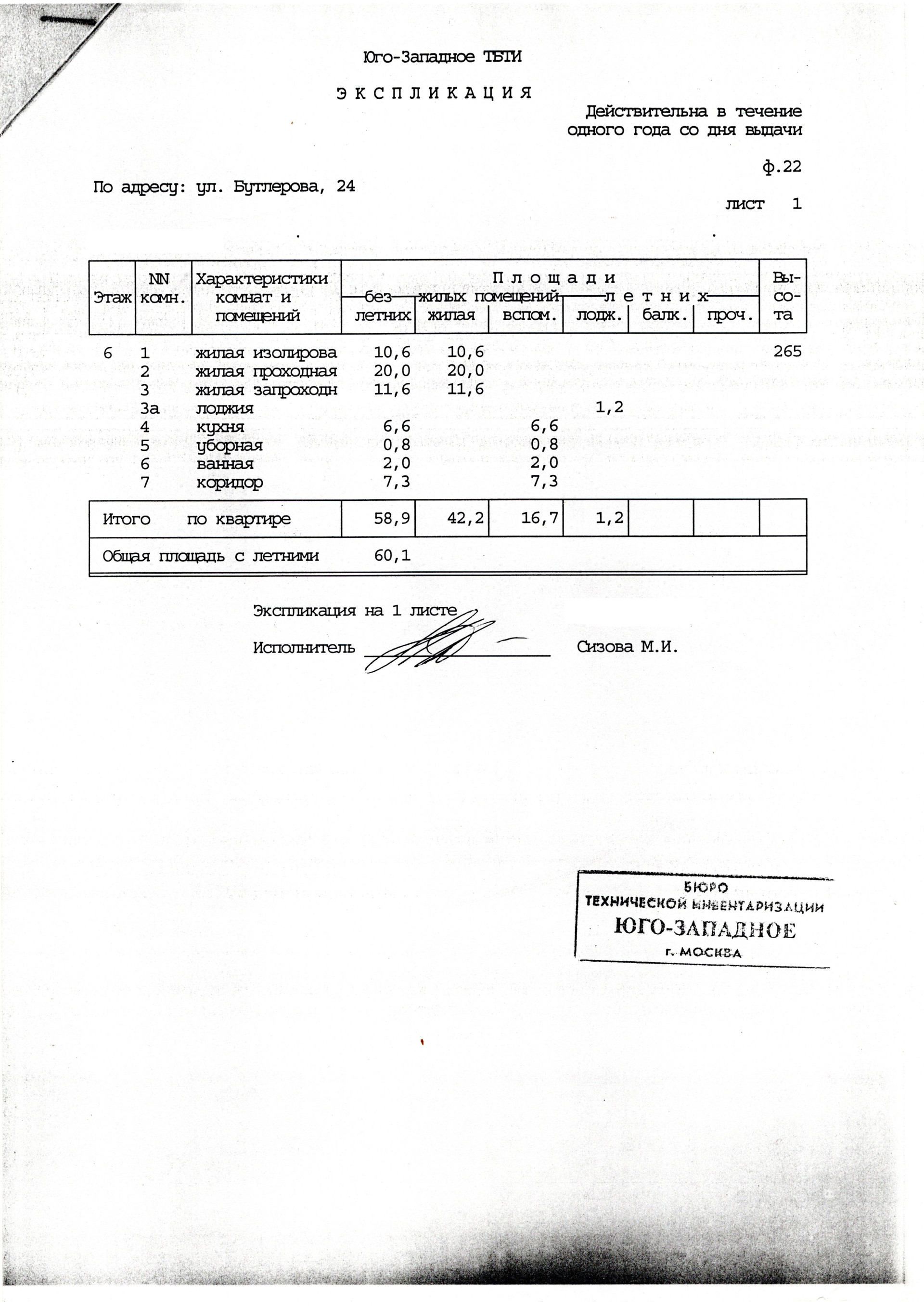 3-комнатная квартира, 60.1 м2, этаж 6 / 9, на продажу в Москве, улица Бутлерова, 24